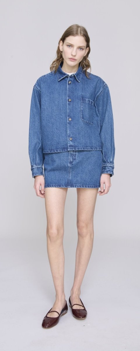 Designet i en dyb indigo delavé-vask giver overshirten et afslappet, men sofistikeret look, som kan styles på utallige måder – brug den som let jakke over en T-shirt eller som et lag i en smart, lag-på-lag styling. Den enkle silhuet og rene linjer gør den til et alsidigt key-piece i enhver garderobe.