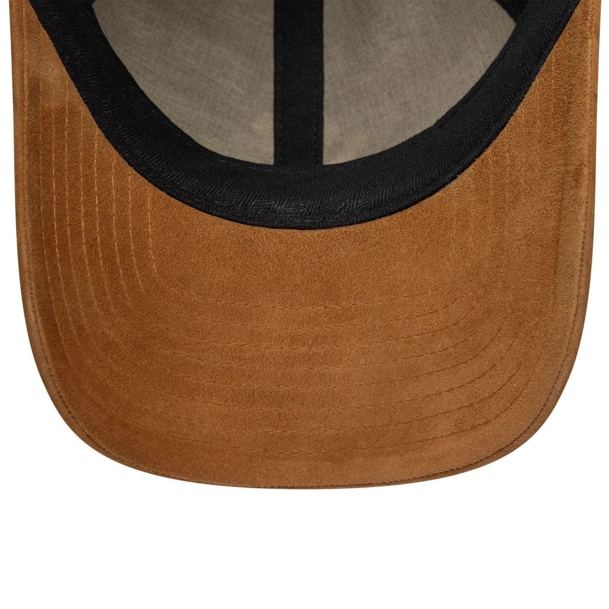 Den buede ruskinds-skygge og den matchende suede undervisor tilføjer et premium look, mens en justerbar ruskindsstrap bagtil med metalspænde sikrer en perfekt pasform. Foran pryder det ikoniske New York Yankees-logo, og på venstre side finder du New Eras broderede flag – et stempel på autenticitet og kvalitet.