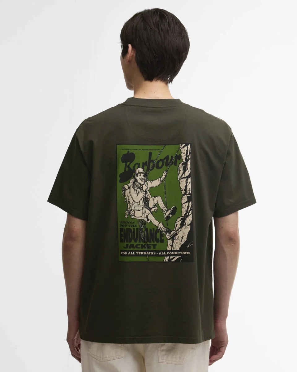 Designet er holdt rent på fronten med et lille Barbour-grafisk print på brystet, mens bagsiden er prydet med et større, arkivinspireret print af den ikoniske Endurance-jakke, som giver T-shirten karakter og identitet.