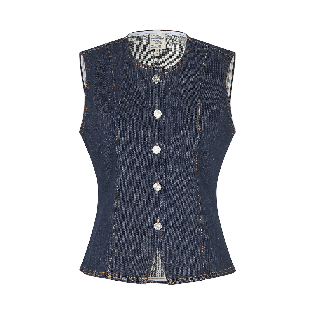 • Fittet denimvest i mørk vask