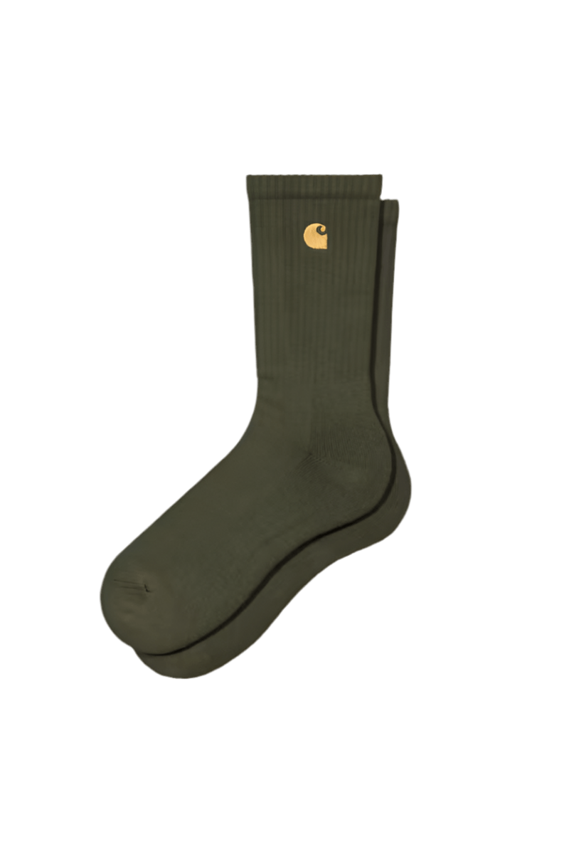 Chase-sokkerne er en del af Chase-programmet, som fokuserer på basisvarer i jersey, og er strikket af bomuldsrigt garn. De er detaljeret med ribstrikket mønster ved anklerne og har en tekstureret, fransk frottépanel på den indvendige sål for en blødere fornemmelse. Et broderet Carhartt WIP 'C'-logo fuldender designet.
