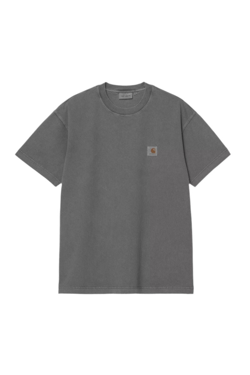 T-shirten er garment-dyed, hvilket giver et let vaskede, men mættet farveudtryk. Den er dekoreret med en vævet Square Label på venstre bryst, som får et subtilt, murket look gennem farvningsprocessen.