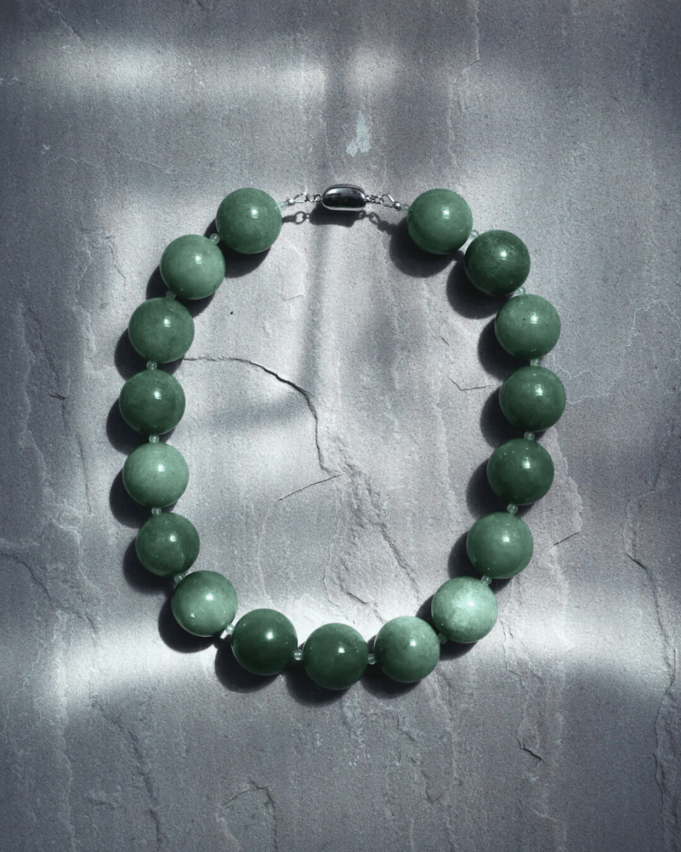 Green Aventurine Necklace er et smukt og tidløst smykke skabt med naturlige aventurinsten, der giver et blødt og harmonisk udtryk. Halskæden har et moderne, minimalistisk design, som gør den nem at style til både hverdag og mere elegante looks. Aventurinens fine grønne tone tilfører et naturligt og roligt præg, mens detaljer i 925 sterlingsølv giver et eksklusivt finish.
