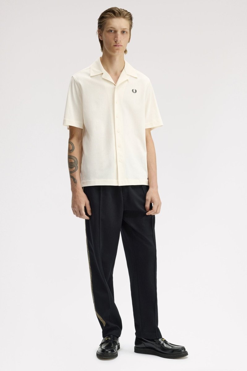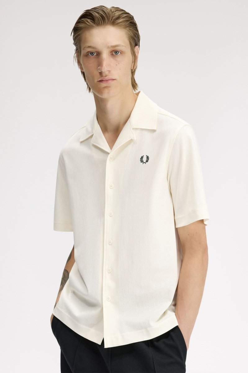 Fred Perry COMPRESS MESH REVERE COLLAR SH Ecru er en afslappet fortolkning af klassisk Fred Perry-skjortearbejde. Skjorten er skåret i let og åndbar bomuldsmesh, der giver en ultralet fornemmelse og høj komfort – ideel til varme dage og afslappede anledninger.