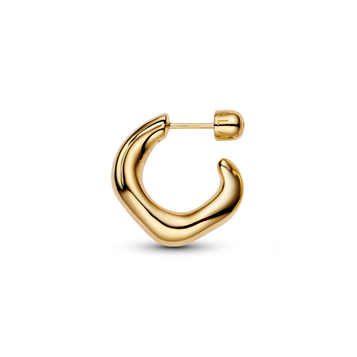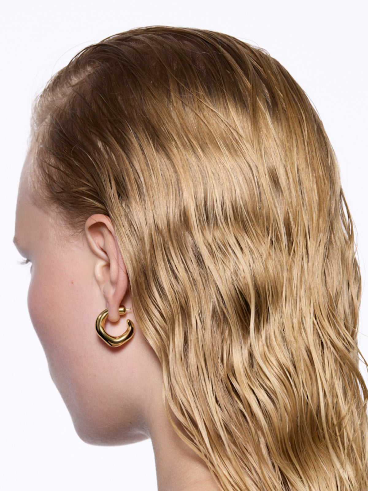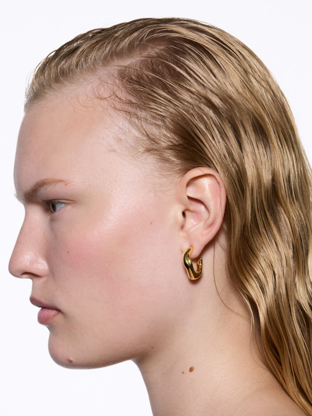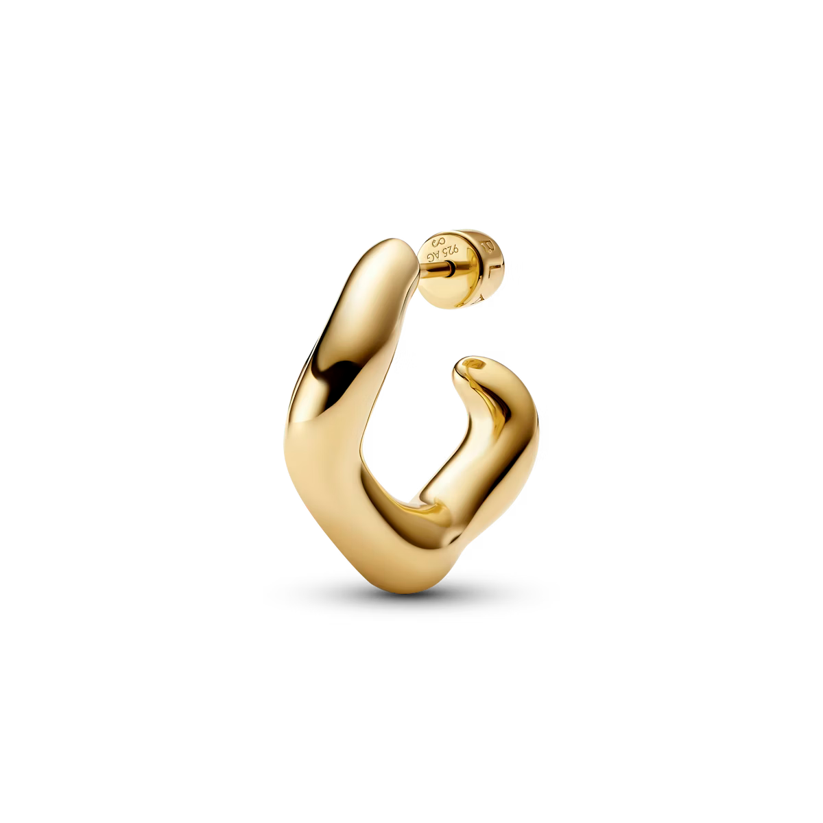 Øreringen er udført i genanvendt 925 sterlingsølv med 18K forgyldning, som tilfører en varm og eksklusiv finish. Den hule konstruktion gør den let og komfortabel at bære – perfekt både som solo statement og i et personligt ear stack.