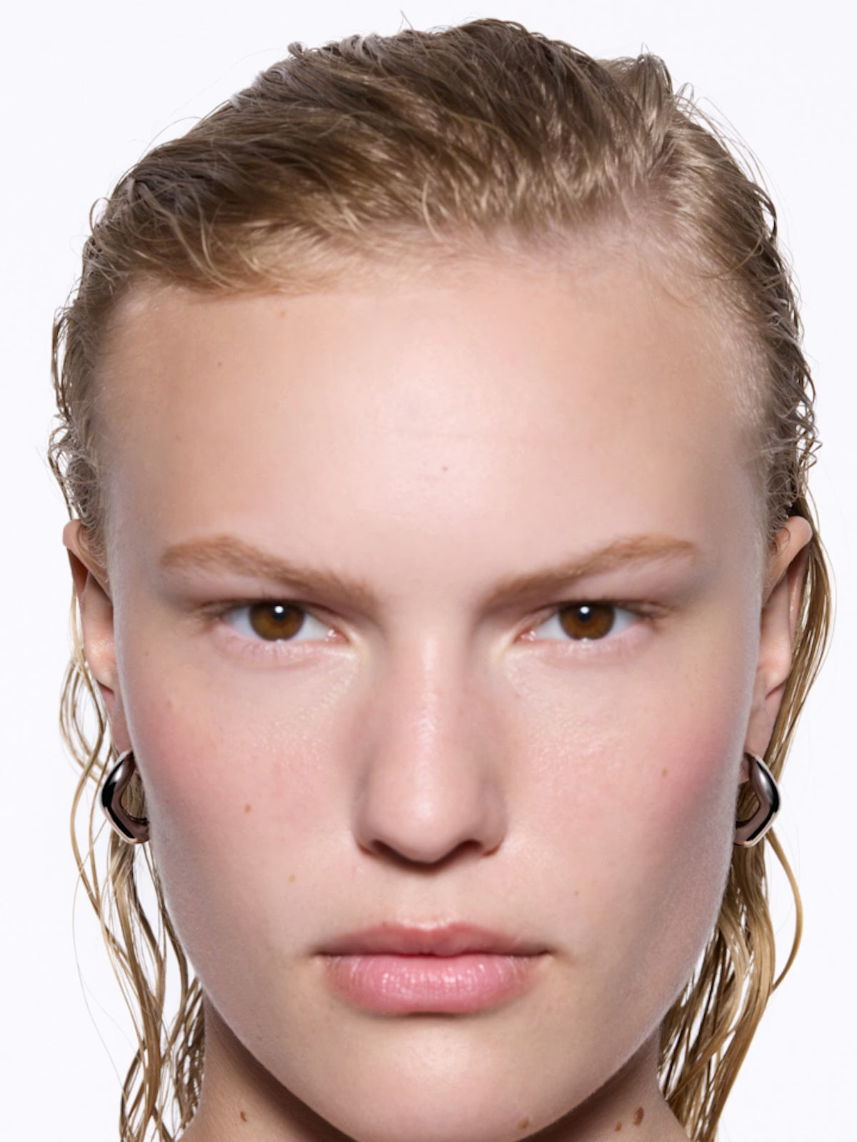 Udført i genanvendt 925 sterlingsølv med hvid rhodiumbelægning for en blank og slidstærk finish. Den hule konstruktion gør øreringen overraskende let og behagelig at bære – perfekt både som solo statement og i et personligt ear stack.