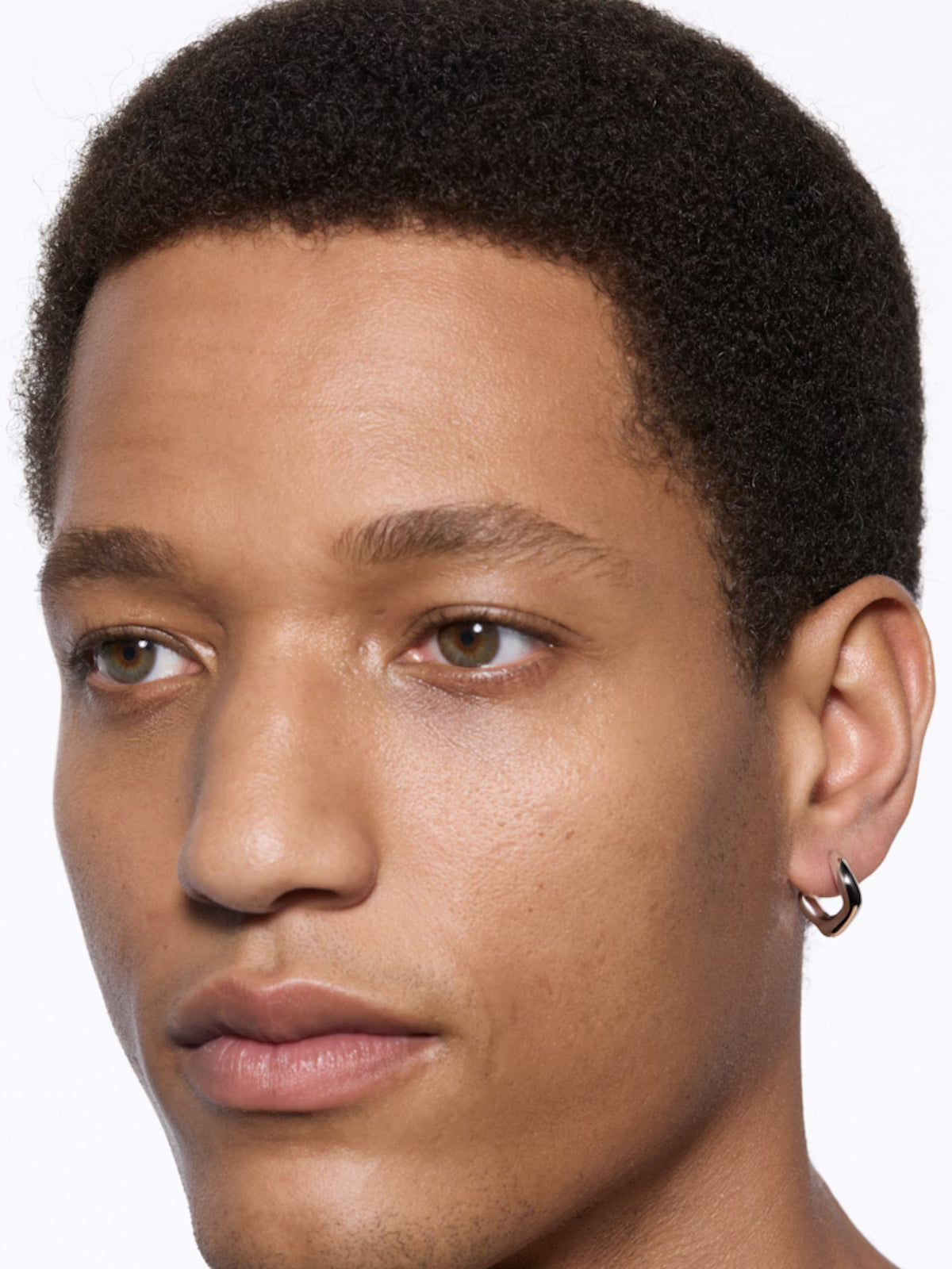 Udført i genanvendt 925 sterlingsølv med hvid rhodiumbelægning for en blank og slidstærk finish. Den lette, hule konstruktion gør øreringen behagelig at bære hele dagen – perfekt både alene og som del af et personligt ear stack.