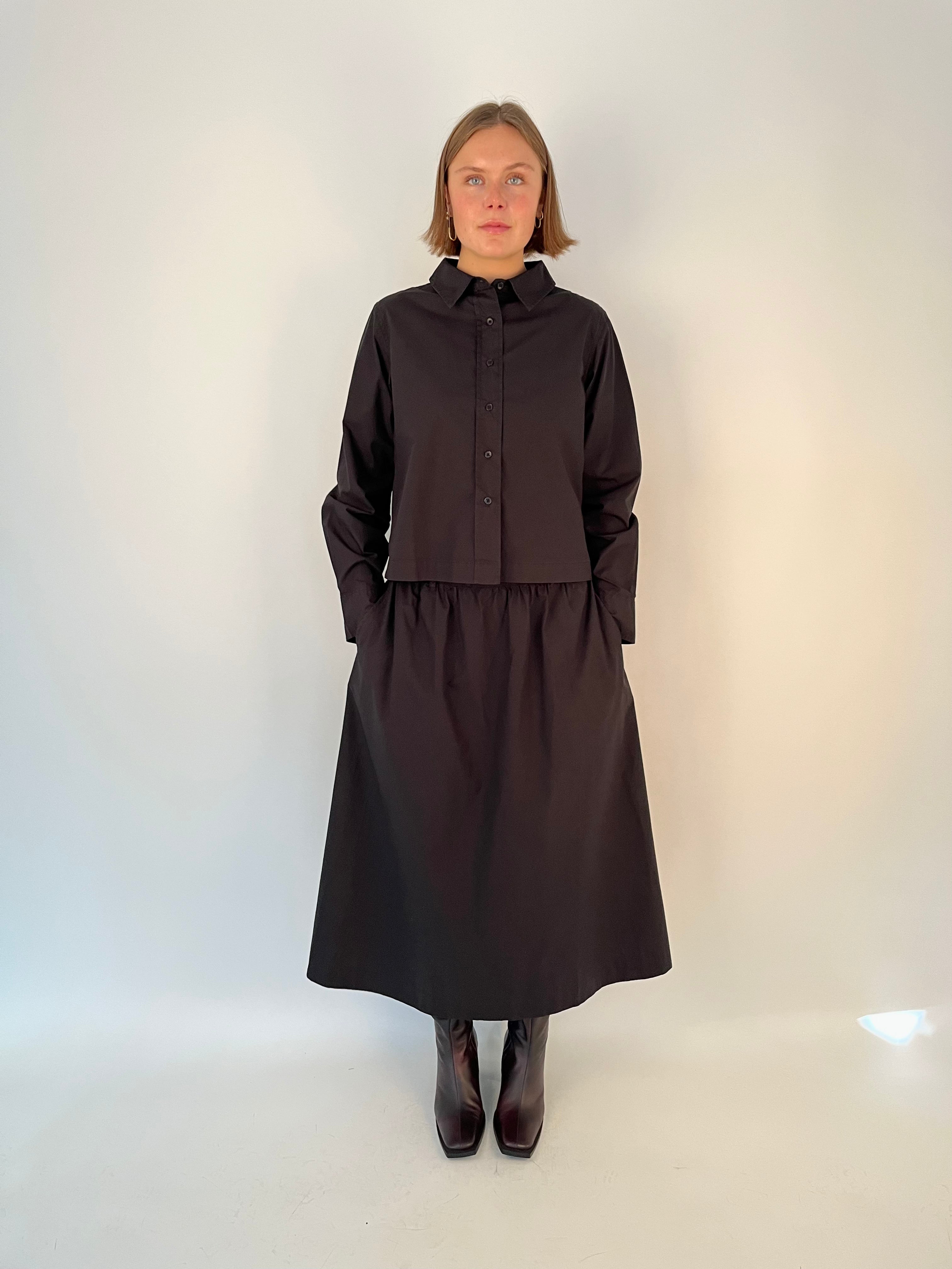 Kyoto Liv skjorten i sort er lavet af 100% bomuld, hvilket giver en behagelig og åndbar følelse hele dagen. Med sit klassiske design og monokrome farve er denne skjorte alsidig og let at style til enhver lejlighed. Den er perfekt til både afslappede og mere formelle anledninger og tilføjer et tidløst element til enhver garderobe. Med dens komfortable pasform og holdbare bomuldsmateriale er Kyoto Liv skjorten et must-have i enhver garderobe.