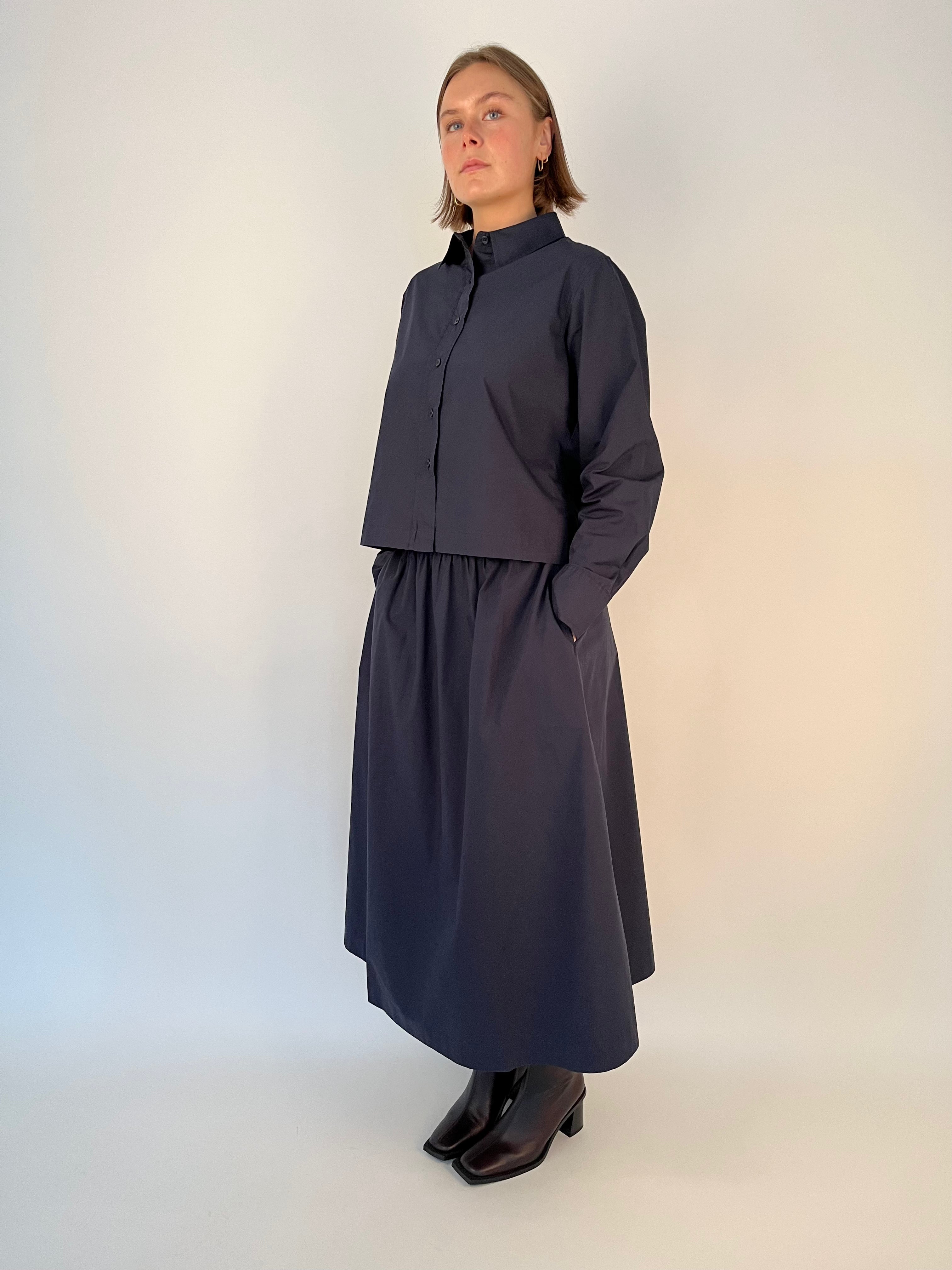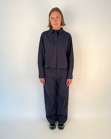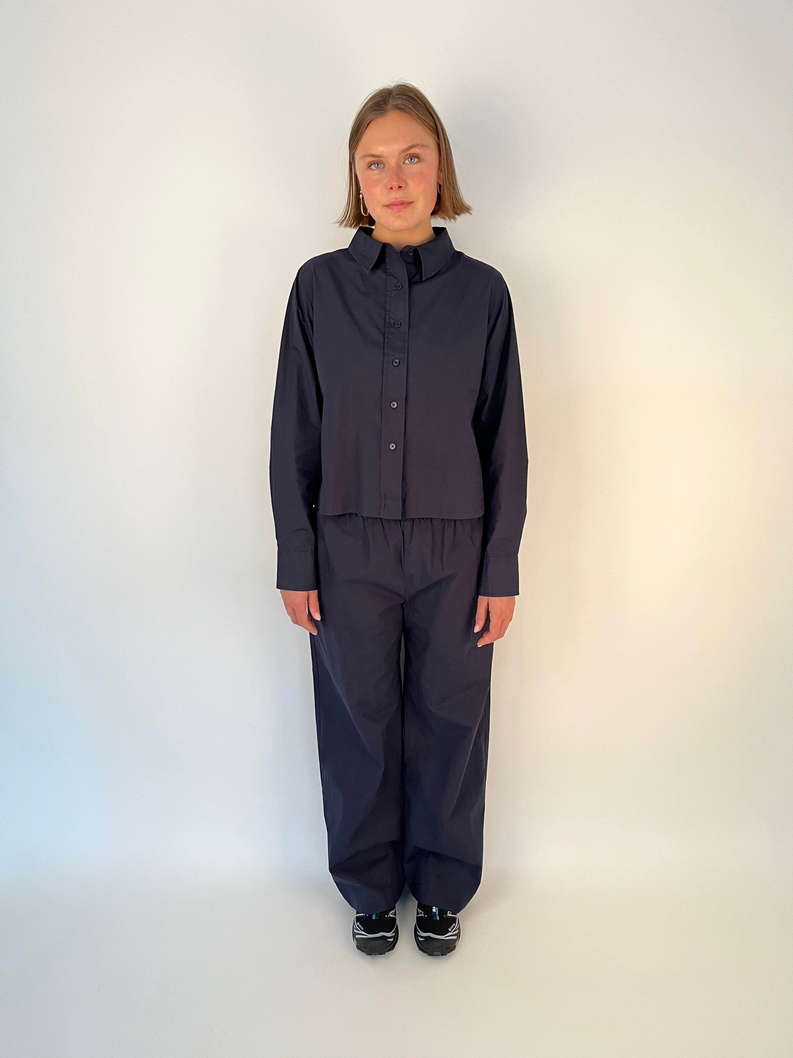 Kyoto Julie skjorten i navy er lavet af 100% bomuld, hvilket giver en behagelig og åndbar følelse hele dagen. Med sit klassiske design og monokrome farve er denne skjorte alsidig og let at style til enhver lejlighed. Den er perfekt til både afslappede og mere formelle anledninger og tilføjer et tidløst element til enhver garderobe. Med dens komfortable pasform og holdbare bomuldsmateriale er Kyoto Liv skjorten et must-have i enhver garderobe.