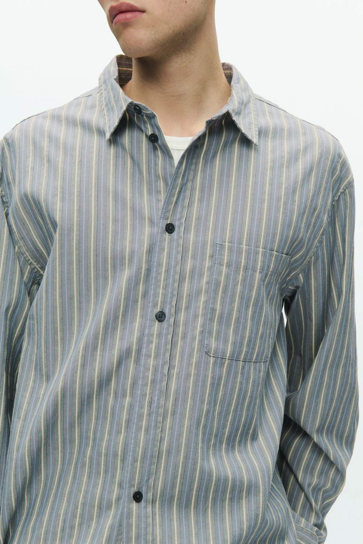 WWCarter Shirt er en klassisk skjorte fra Wood Wood med et tidløst, let workwear-inspireret udtryk. De fine striber i Vintage Blue giver skjorten karakter, mens det rene snit holder looket elegant og alsidigt.