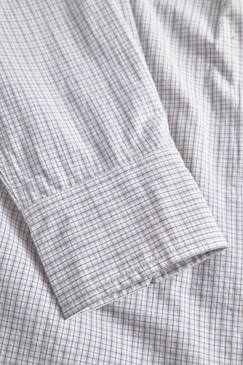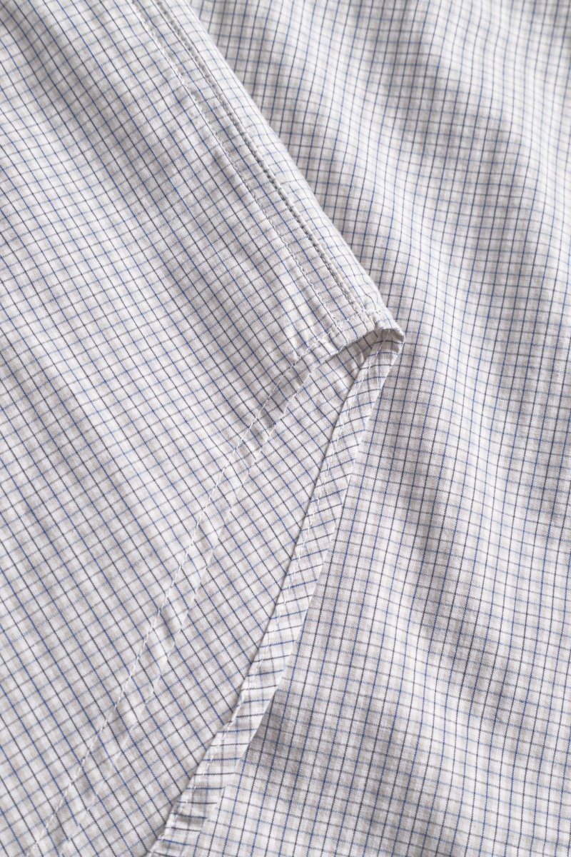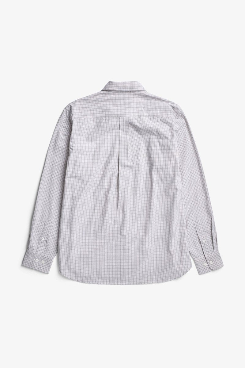 En oversized skjorte med en bredere kropsbygning, fremstillet af let bomuldspoplin, som er vasket for en afslappet og blød fornemmelse. Denne skjorte har garnfarvede tern, en brystlomme, bokslæg bagpå, formsydd kant og perlemorsknapper.