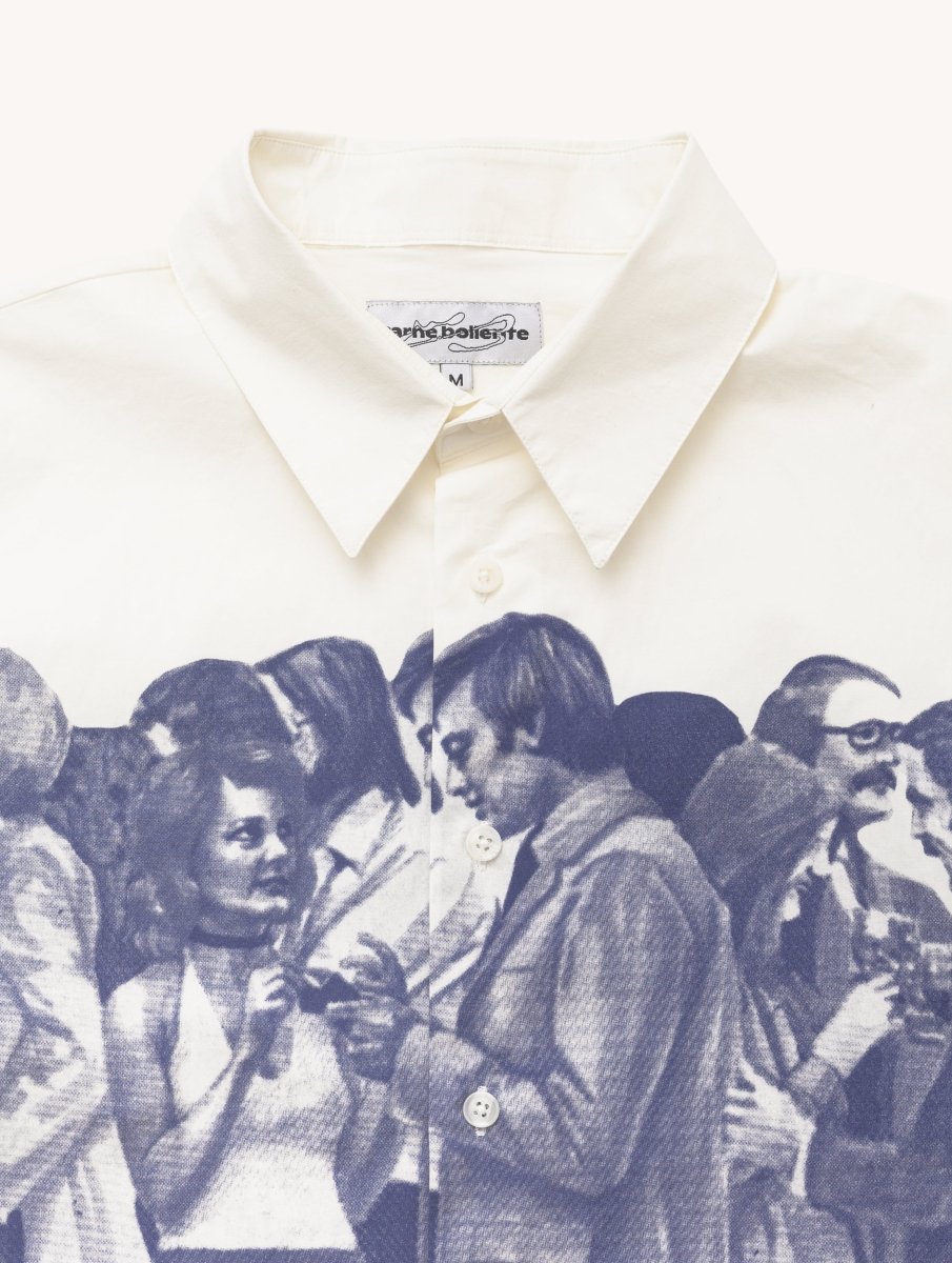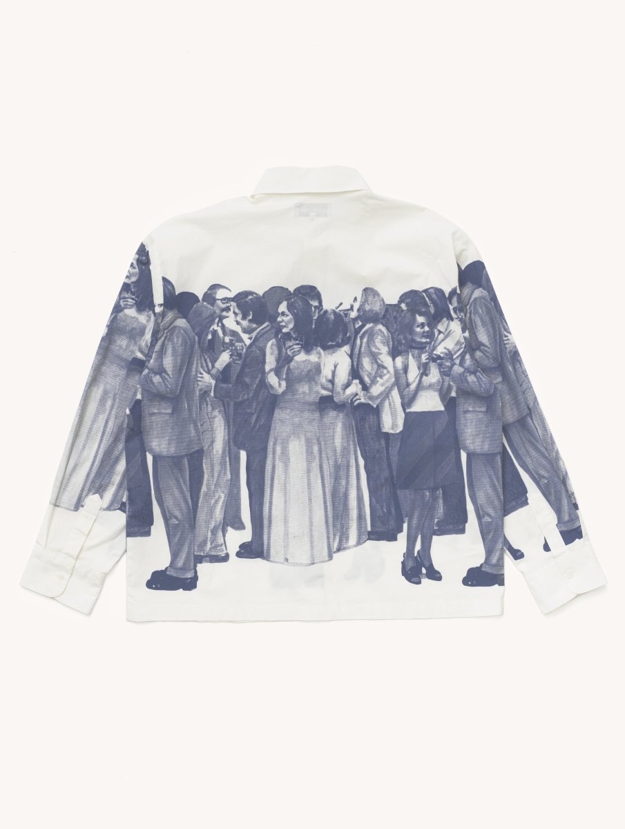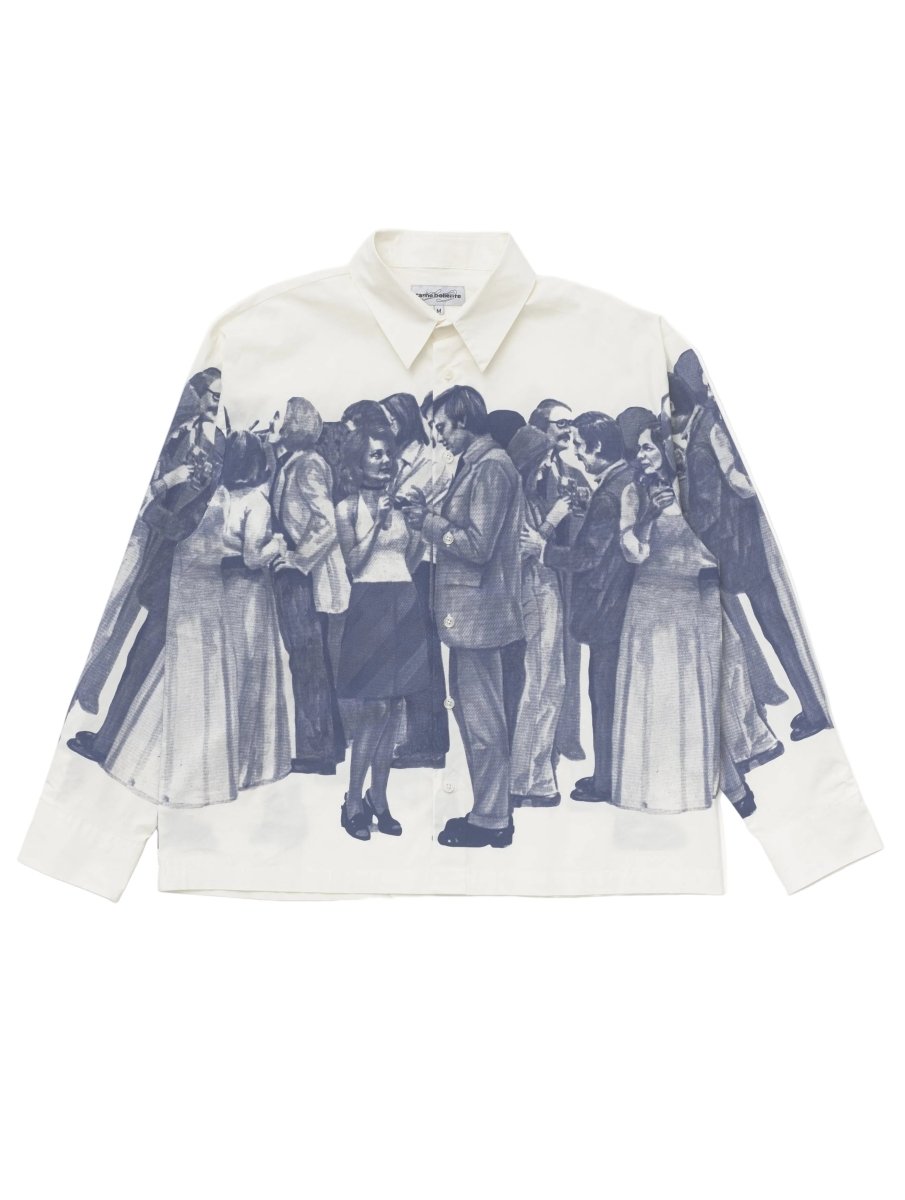 How I Met Your Father er en langærmet skjorte med knaplukning og et markant digitalt print, der omslutter designet i en fortælling. Motivet skaber en levende, næsten filmisk stemning – som et øjeblik frosset i tid.