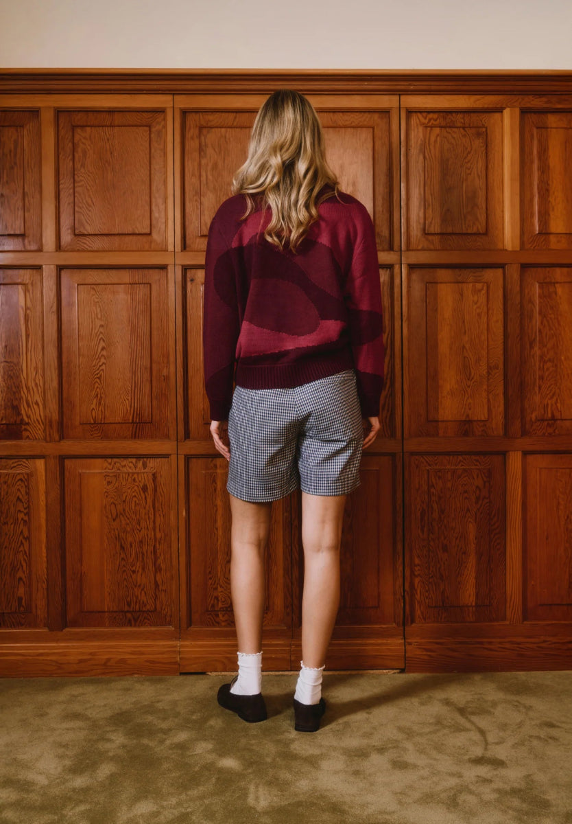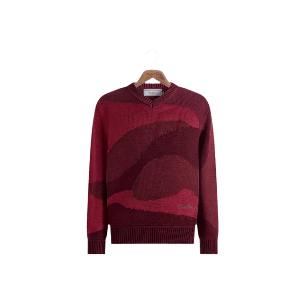 House of Sunny VOL2607 The Red Landscape i farven Ruby Red er en unik statement-strik, der kombinerer kunstnerisk udtryk med komfortabelt design. Trøjen er fremstillet i en opdateret, tung bomuldsstrik, som giver en luksuriøs fornemmelse og perfekt struktur.