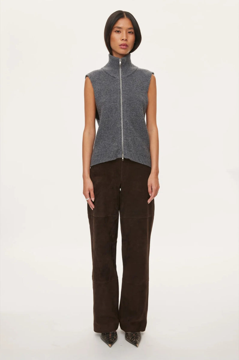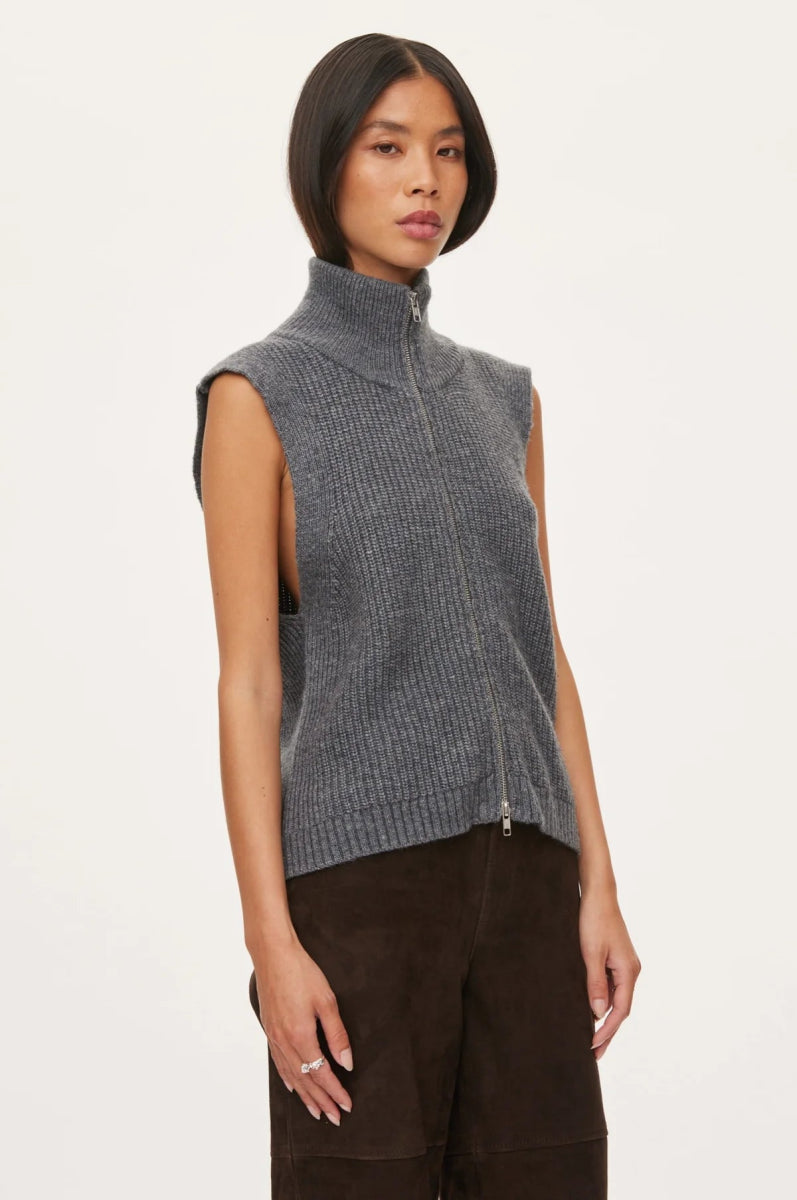 Oval Square Fave Knit Zip Vest Dark Grey Melange