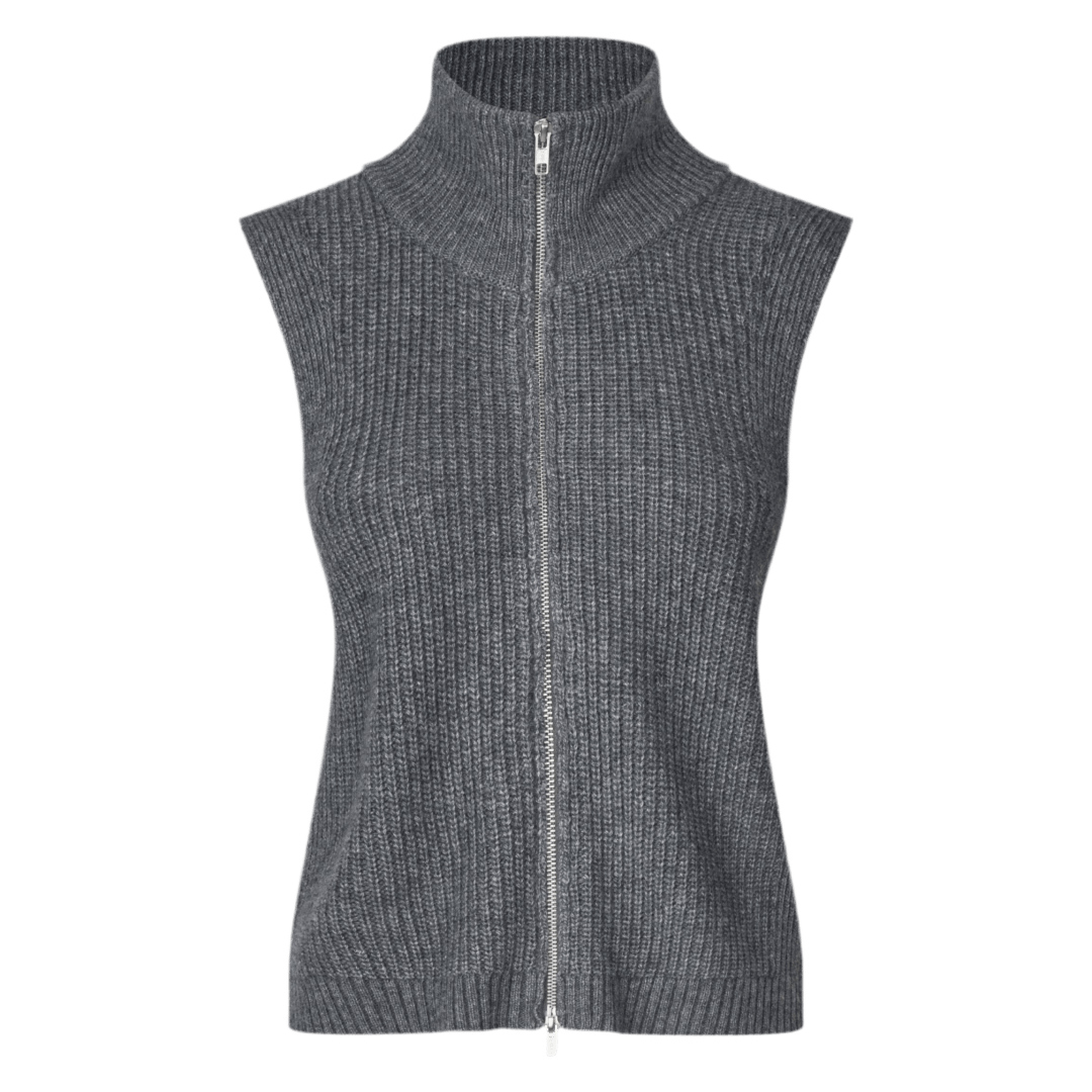 Oval Square Fave Knit Zip Vest Dark Grey Melange – Strikvest i Blød Uldblanding