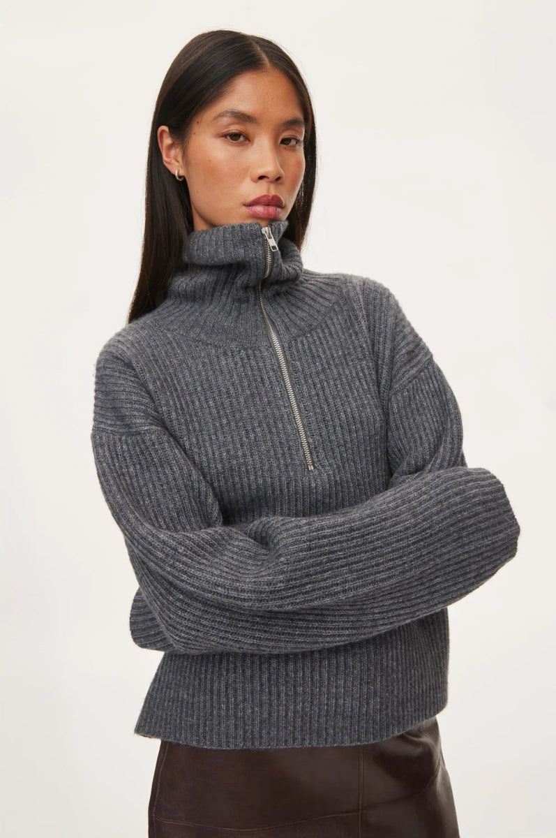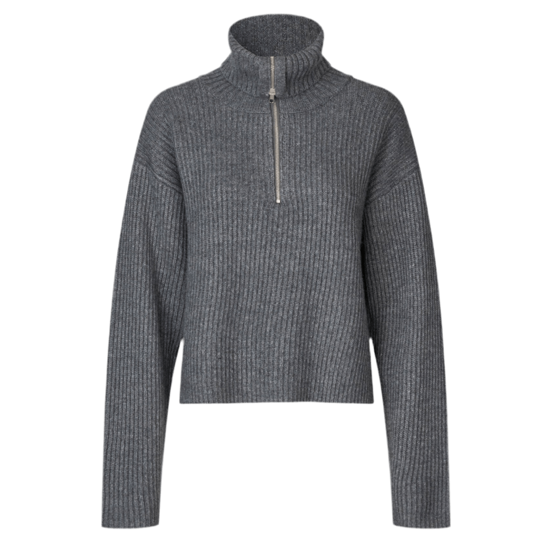 Oval Square Fave Zip Knit Dark Grey Melange – Striktrøje med Halv Lynlås