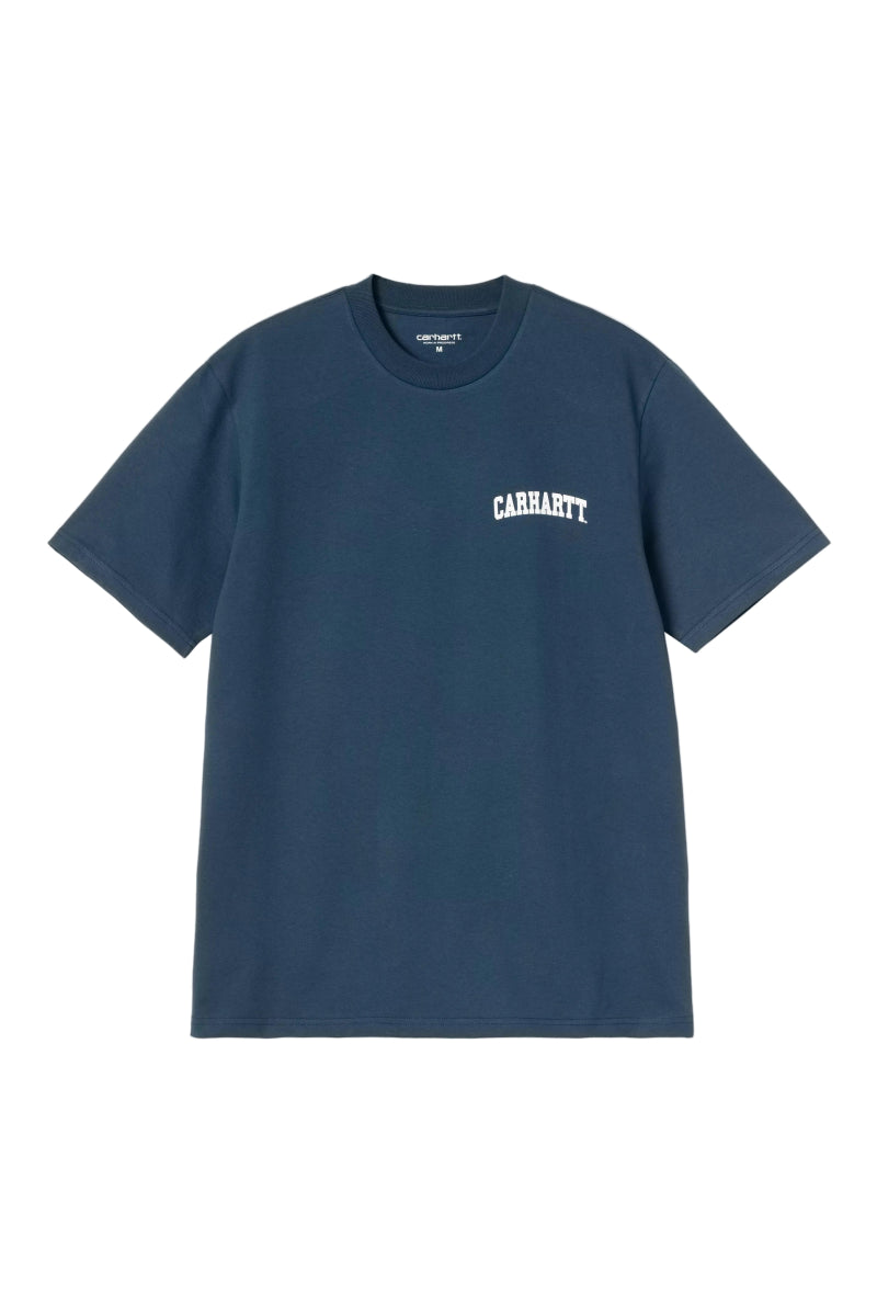 Det grafiske University Script-print på fronten giver T-shirten et tydeligt Carhartt WIP-DNA med referencer til college- og streetwear-æstetik. En solid basic med karakter, der fungerer sæson efter sæson.