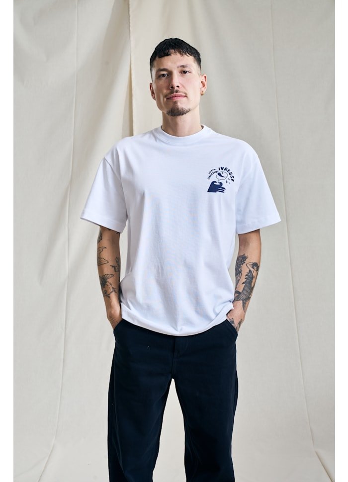 Libertine Beat Ivresse 1868 er en stilren T-shirt i 100 % økologisk bomuld, der kombinerer komfort med kunstnerisk kant. T-shirten har et regular fit og prydes af Libertines karakteristiske Ivresse-kunstprint på både front og ryg. Ivresse står for glæde og inspirerende kaos – et tema, der afspejles i det unikke design.