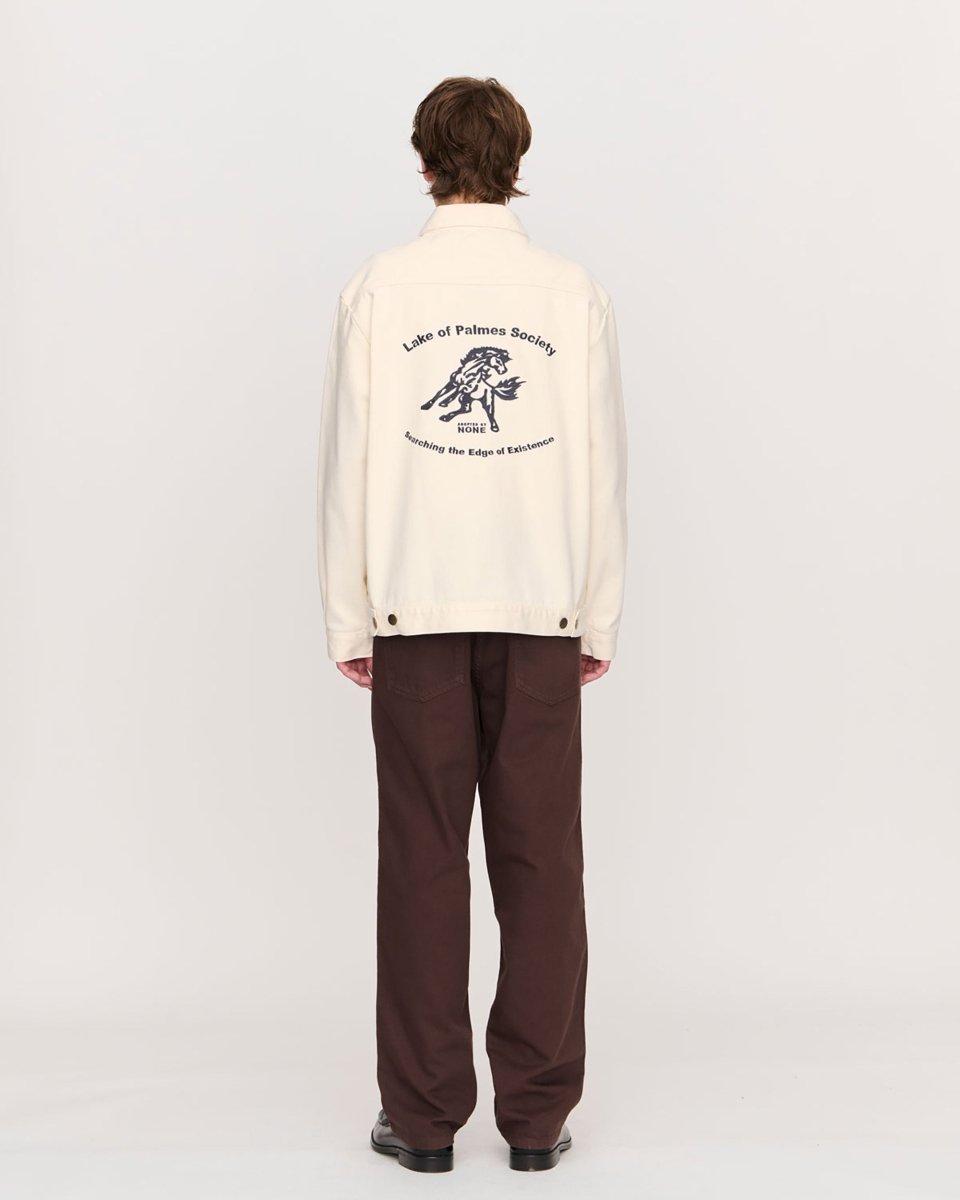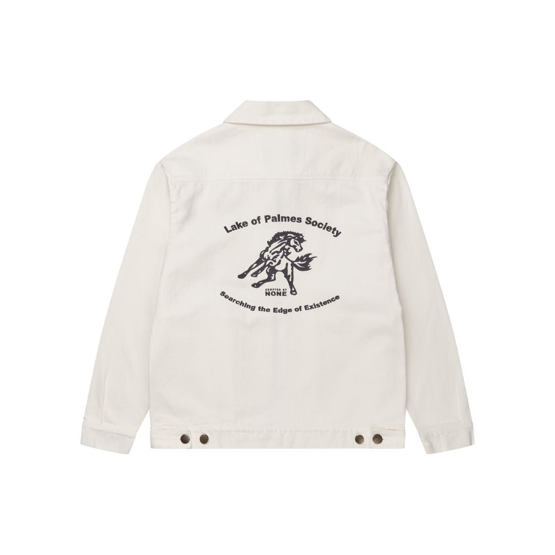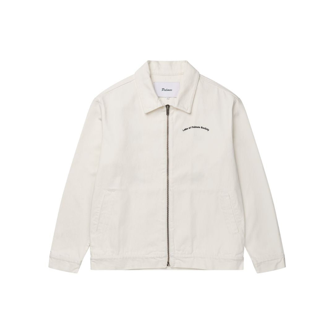 Lake Zip Jacket fra Palmes er en afslappet, workwear-inspireret jakke designet i økologisk bomuld. Den rene off-white farve kombineret med et enkelt front-logo og stort rygprint giver jakken et moderne og grafisk udtryk. Med sit minimalistiske snit og lige pasform fungerer den som en alsidig layering-piece, uanset om du styler den med denim, chinos eller brede bukser.