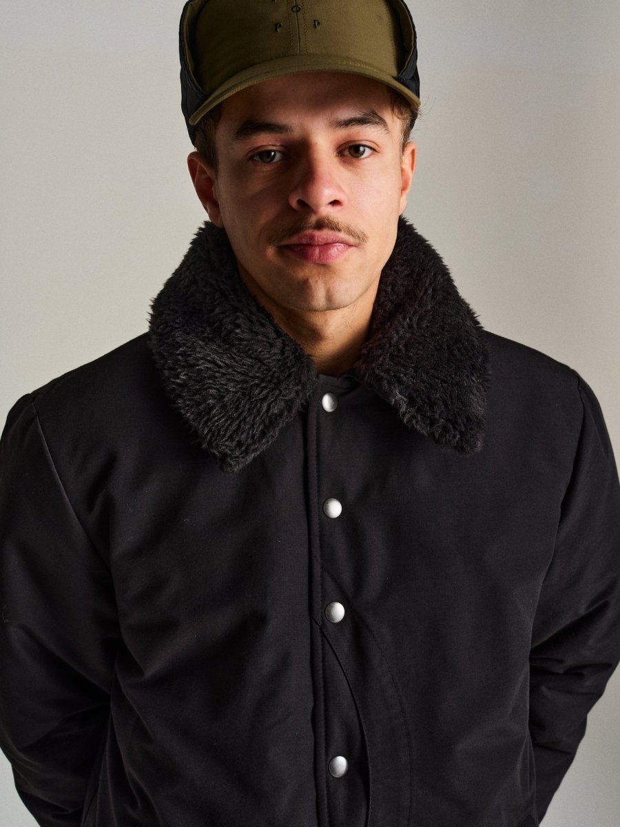 • Aftagelig krave med trykknapper over sort fløjlskrave