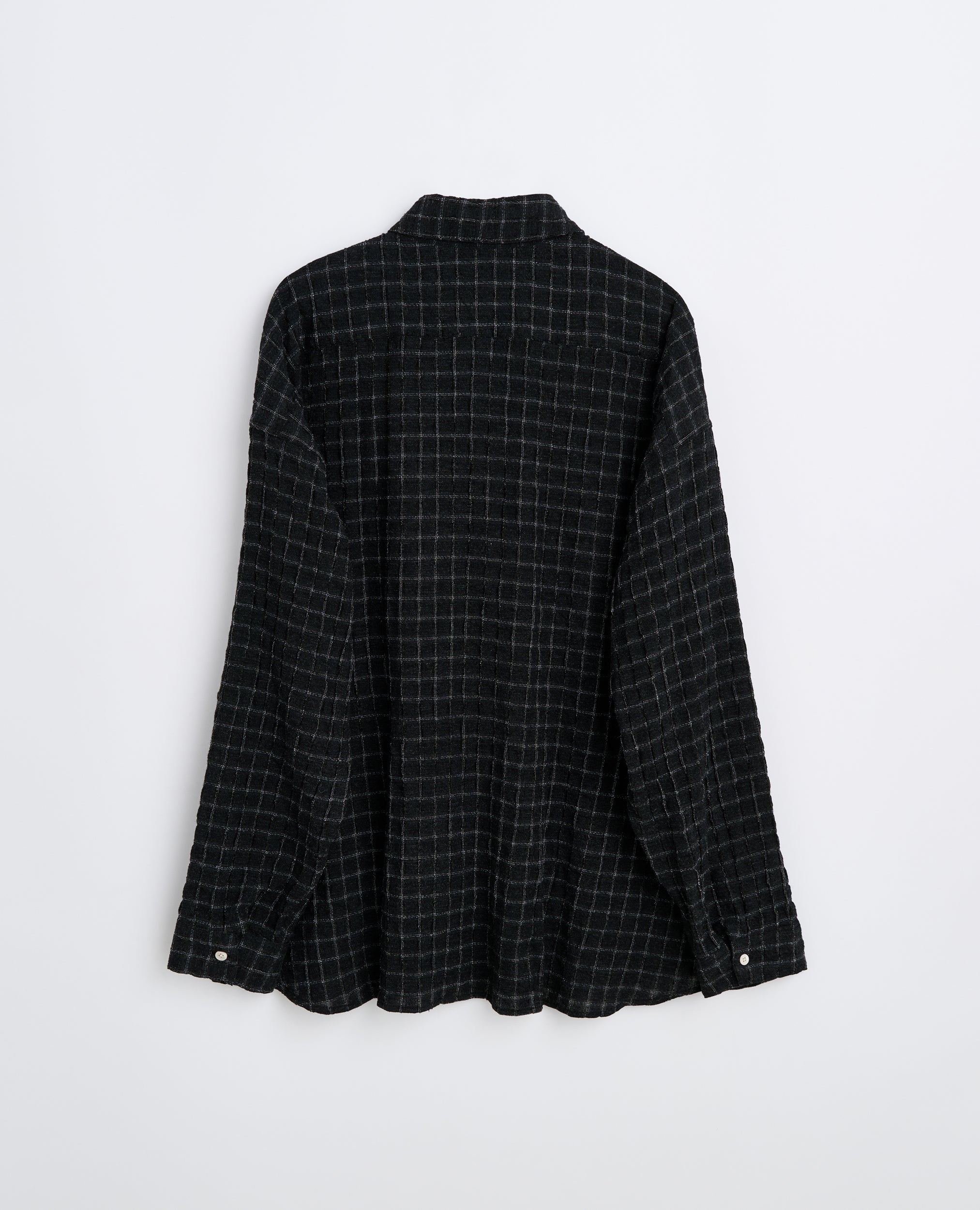Skjorten er lavet af et let italiensk bomuldsblanding med et ternet mønster, der har en spændende høj-lav tekstur. Det giver stoffet en unik følelse og udseende. Ægte perlemorsknapper tilføjer et strejf af luksus til designet, mens en brystlomme giver praktisk funktionalitet. Skjorten er fremstillet i Portugal, hvilket sikrer en høj standard for håndværk.