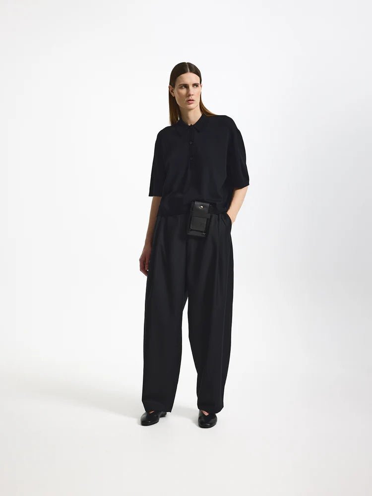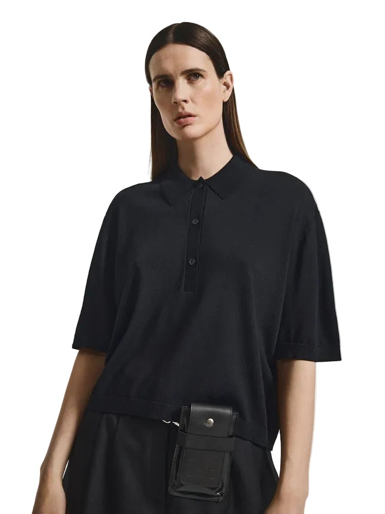 Denne kortærmede polo i strik er en raffineret version af en klassisk form og er fremstillet af en let blanding for en blød og flydende finish. Den afslappede silhuet giver en afslappet følelse, mens den rene krave og tonede stolpelukning holder finishen på et højt niveau. En alsidig basisgarderobe, der kombinerer blød skrædderi med afslappet lethed.