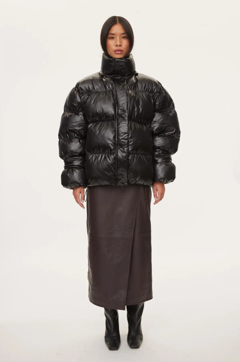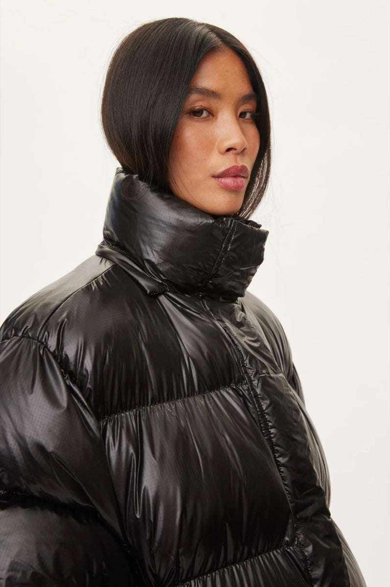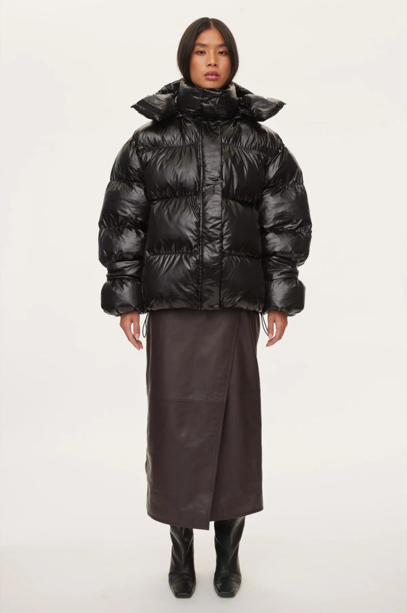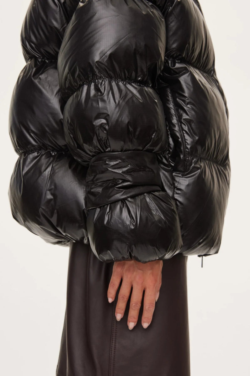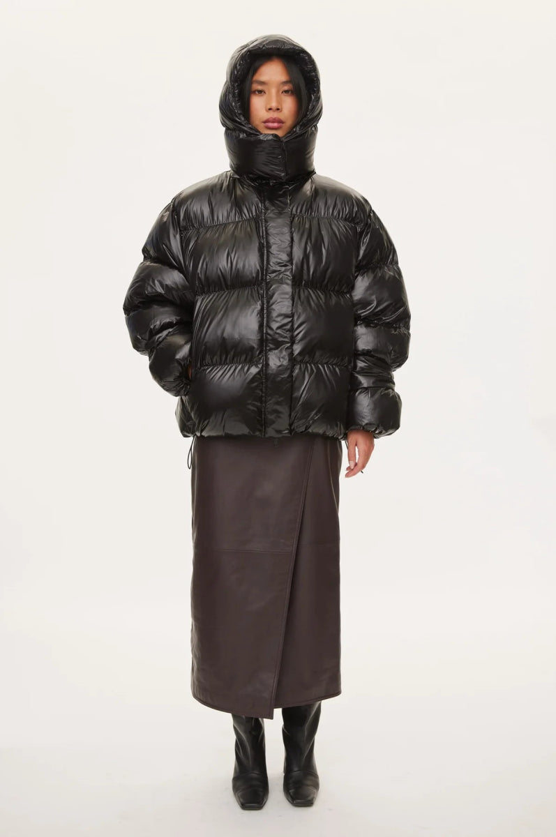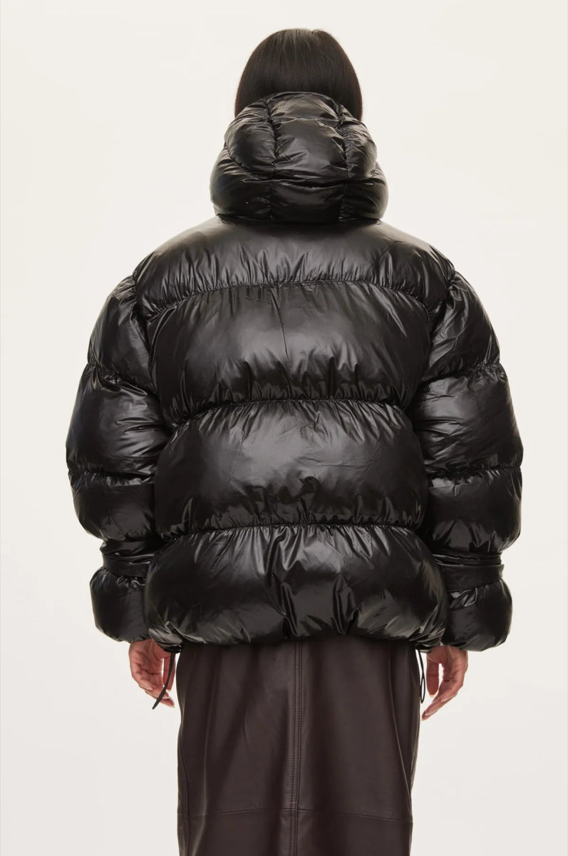 Oval Square præsenterer Active Hood Jacket i farven Sort – en funktionel og stilfuld hooded puffer-jakke med moderne, voluminøs silhuet. Jakken er fremstillet med genanvendt polyamid yderstof og fyld, hvilket giver både varme og bæredygtig kvalitet.