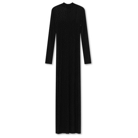 KaiaRS Dress fra Résumé er en elegant, lang mesh-kjole i sort med et diskret prikket mønster, der giver et sofistikeret og moderne udtryk. Kjolen har lange ærmer, en let høj hals og en smal, feminin silhuet, der falder smukt langs kroppen. Det semi-transparente mesh giver et let og luftigt look, som er perfekt til layering eller styling til festlige anledninger.