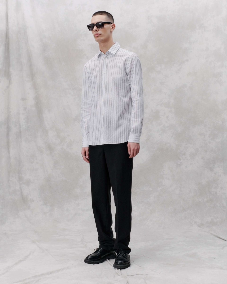 Libertine-Libertine Babylon 3643 Black Sand Stripe – Klassisk skjorte i tekstureret bomuld