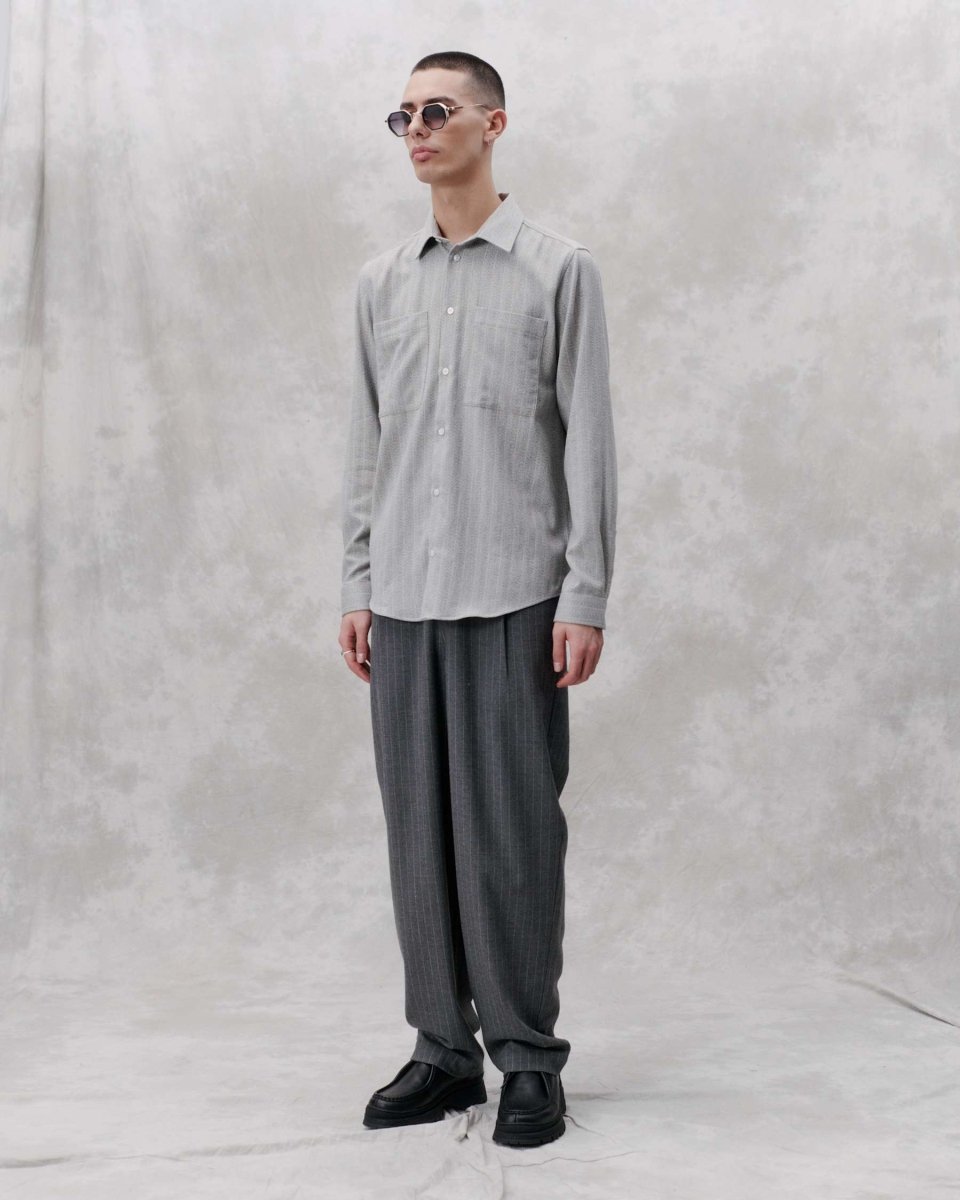 Libertine-Libertine Canyon 3640 Grey Herringbone Shirt – Klassisk skjorte i herringbone-design