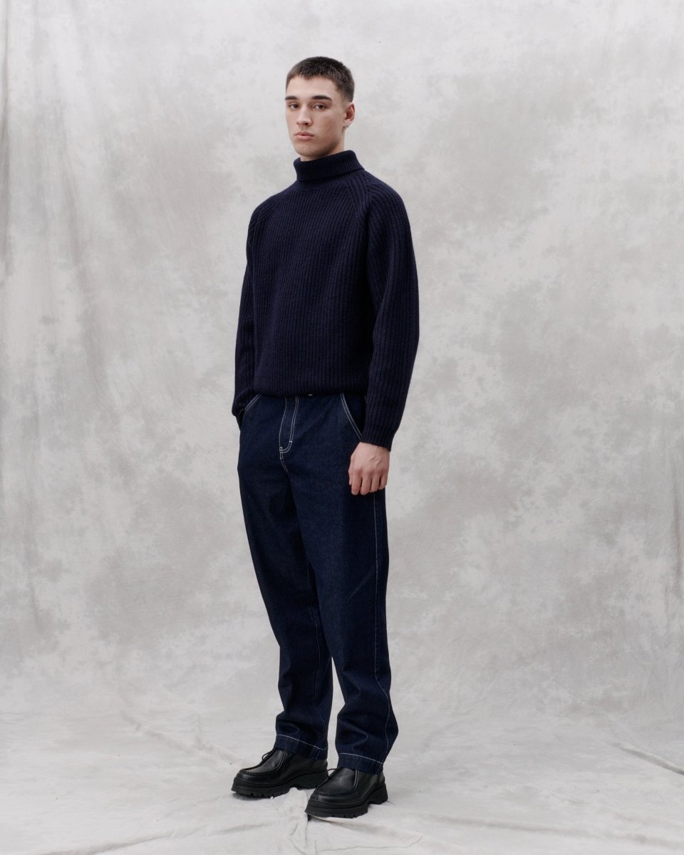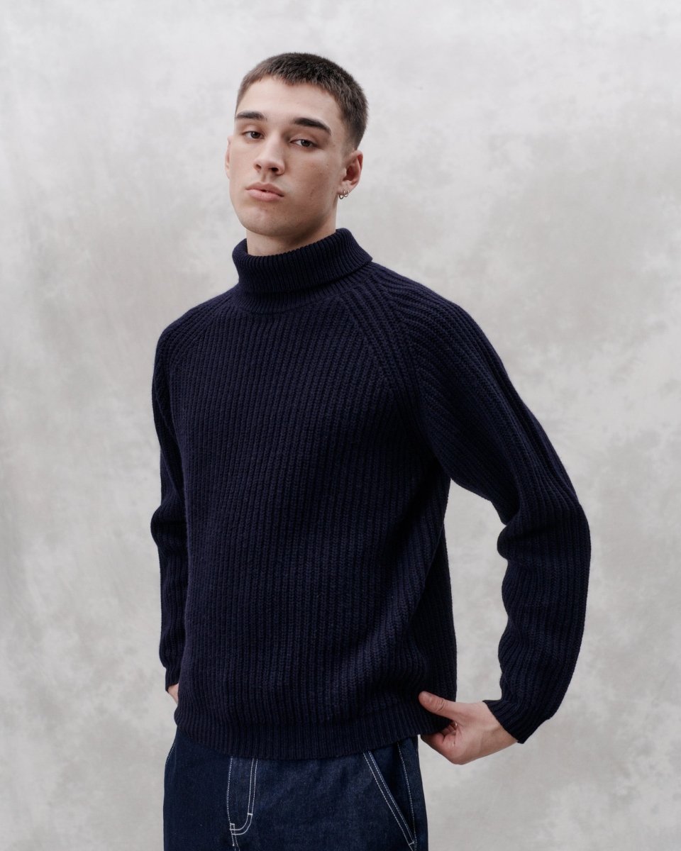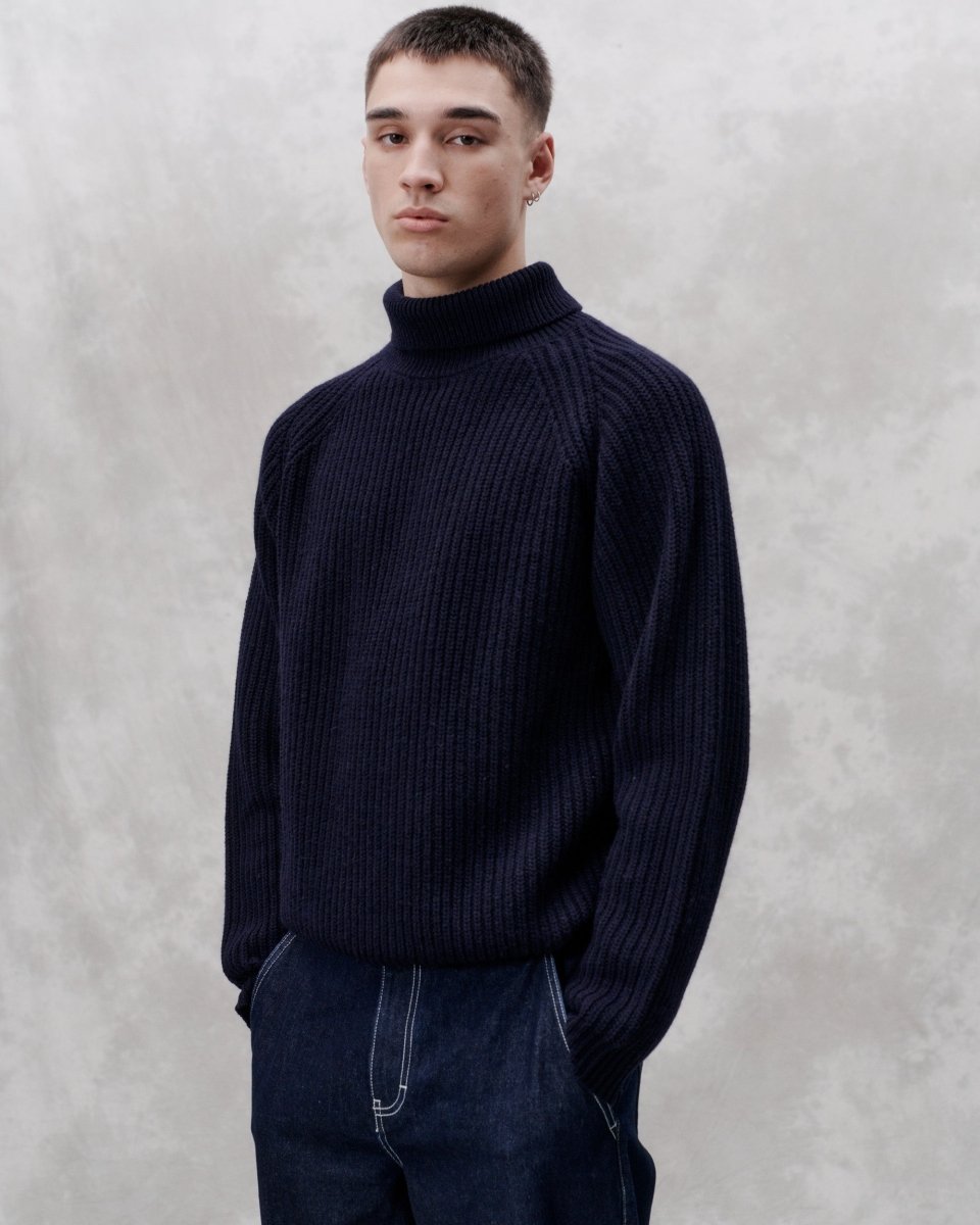 Session er en 5 GG halvmasket strikket trøje med rullekrave lavet af blød uld. Den har en afslappet pasform med raglanærmer og enkeltvis ribkant i hals og ærmer.