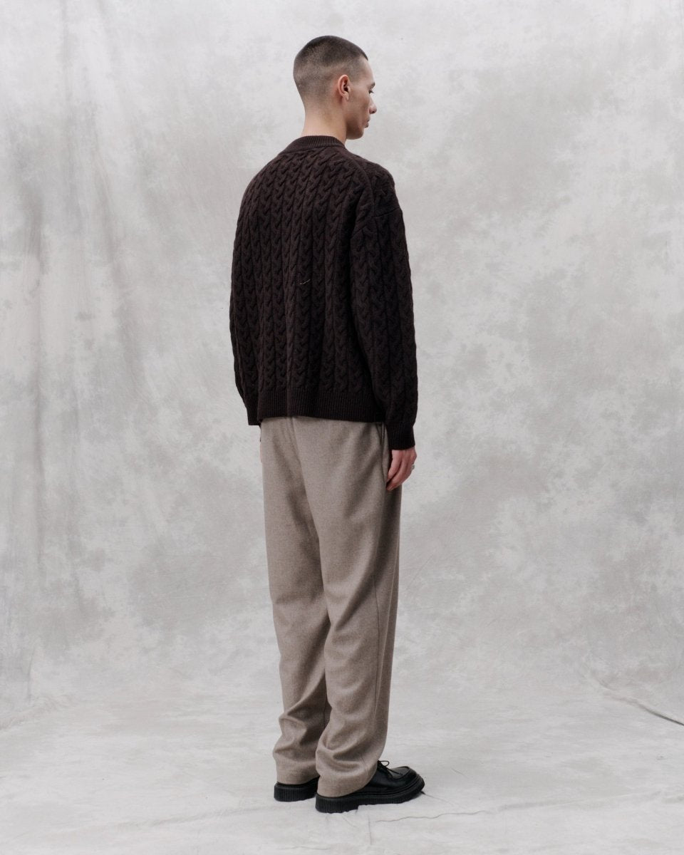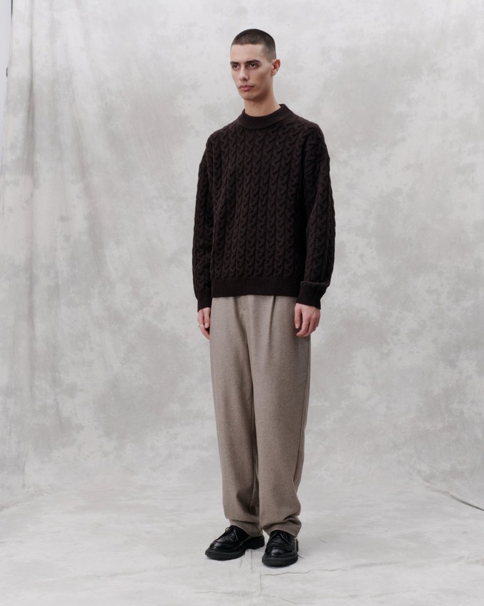 Topanga is a 5 Gauge cable stitch jumper made from soft wool. It comes in a relaxed fit with set-in sleeves and one by one ribbed cuffs, bottom hem and neck.