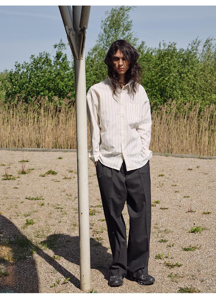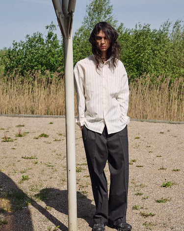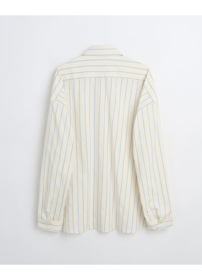 Løs skjorte i blødt tercel-blandet stof med klarblå coupéstriber