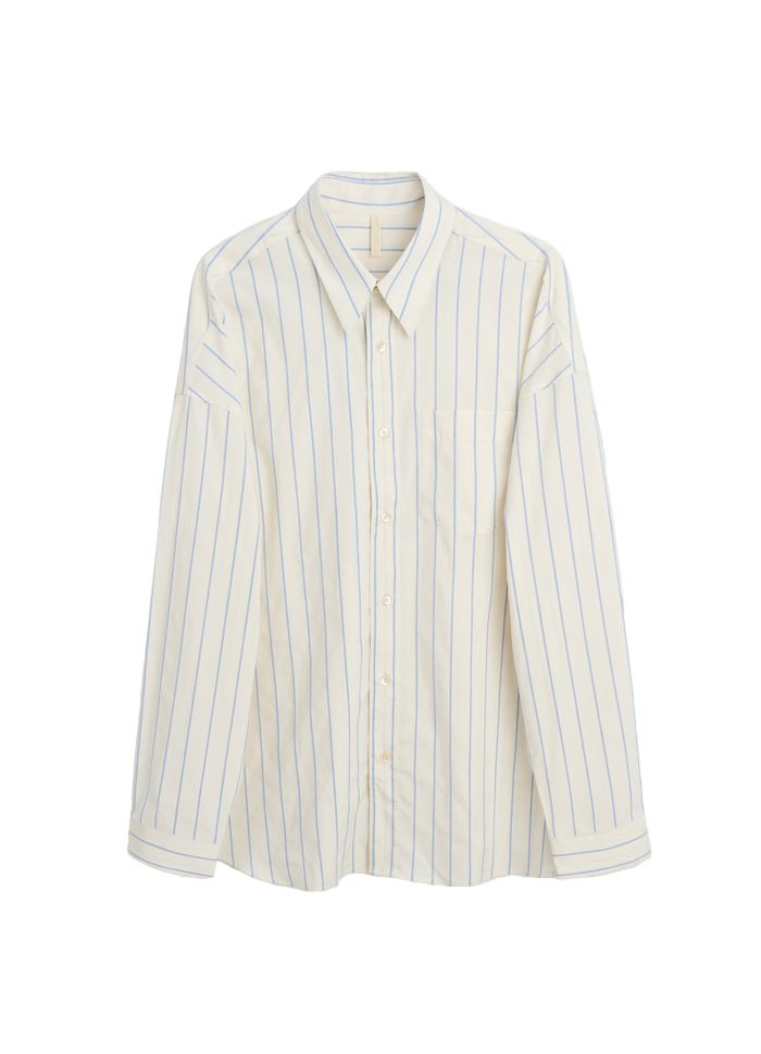 Løs skjorte i blødt tercel-blandet stof med klarblå coupéstriber