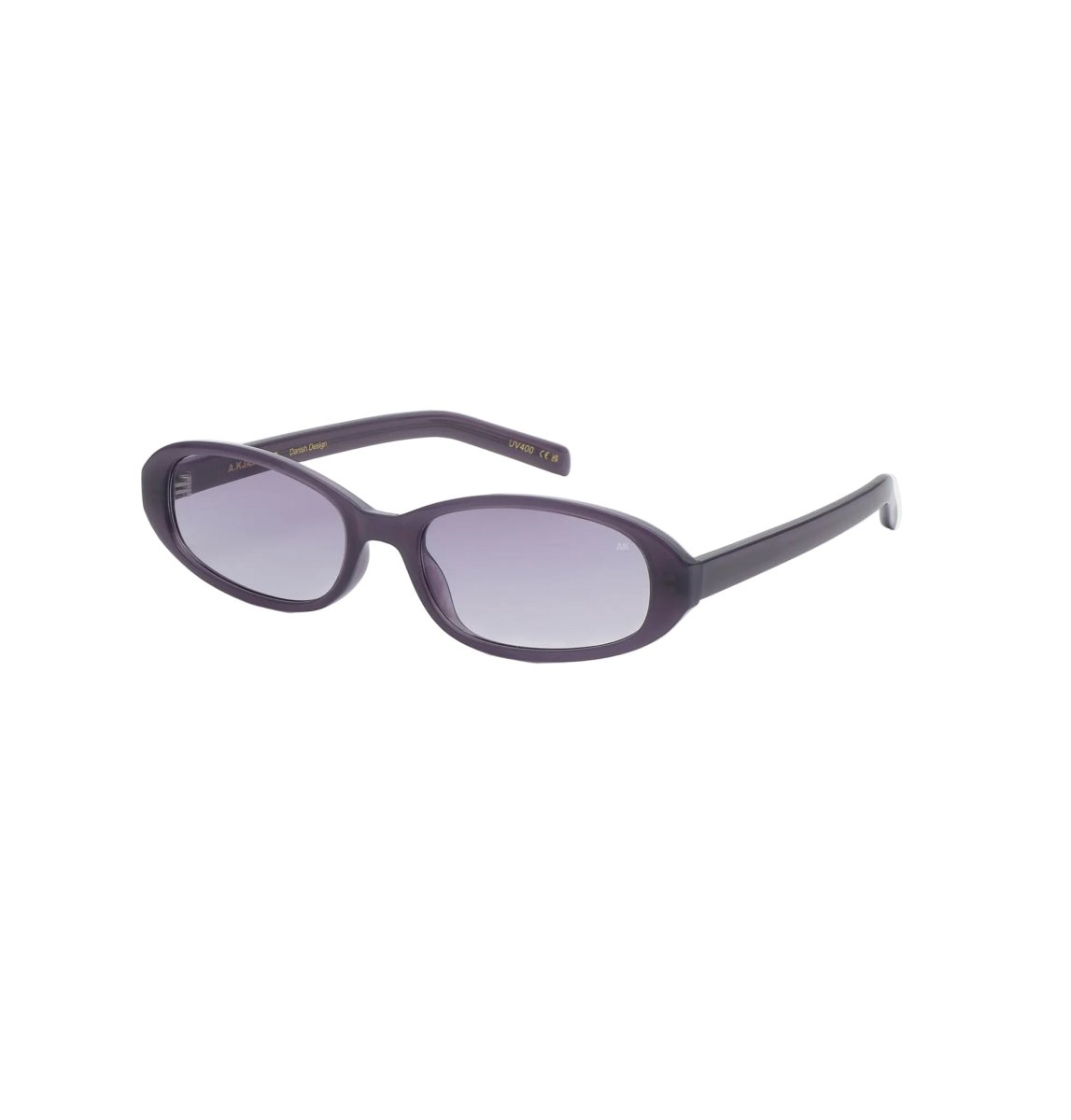 A. Kjærbede Macy er en moderne solbrille med et slankt stel og et markant, minimalistisk udtryk. Designet giver et fashion-forward look og fungerer som et statement accessory til både hverdag og solrige dage.