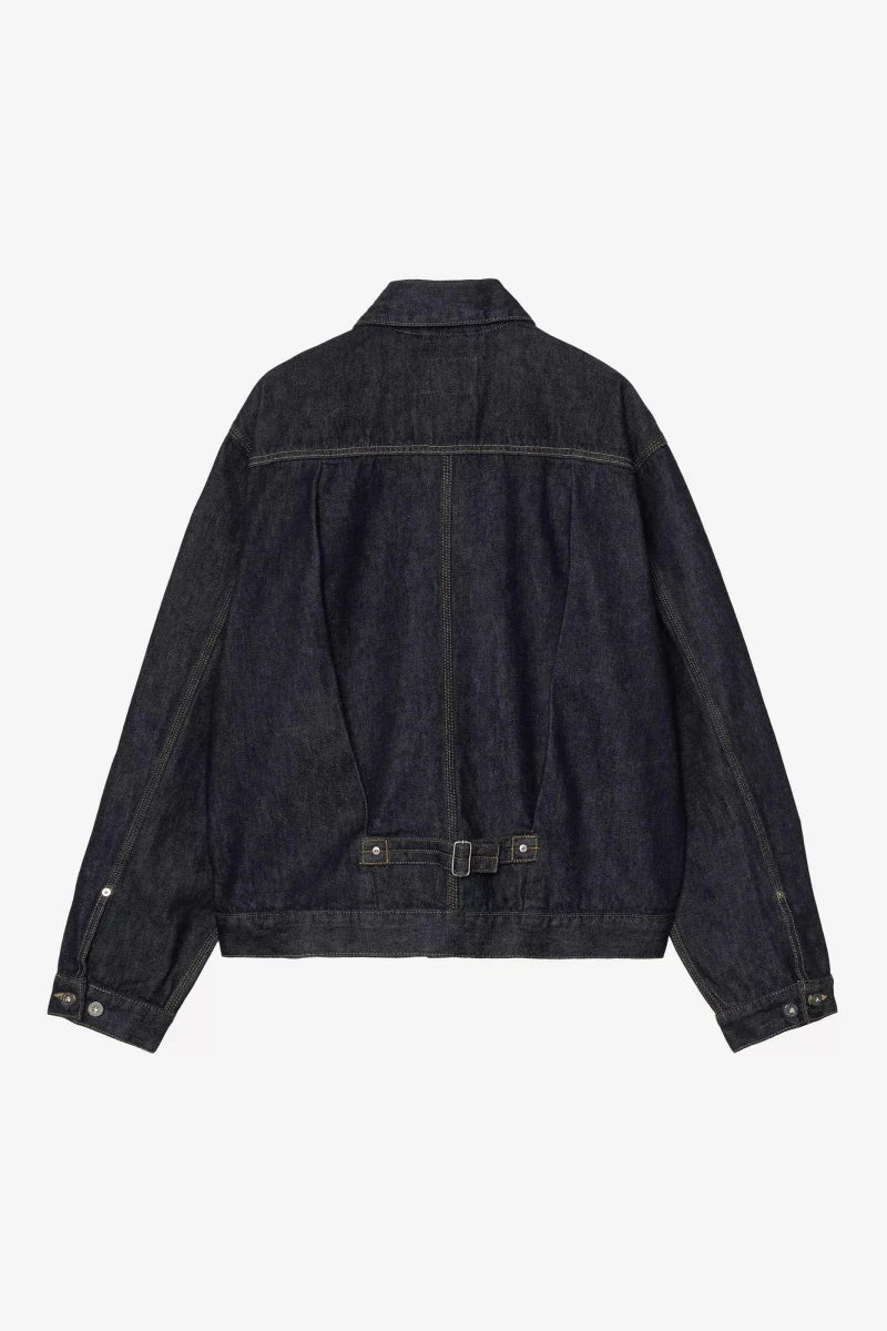 Belmar-jakken er lavet af kraftig, uforet bomuldsdenim. Jakken har to brystlommer og to sidelommer og er detaljeret med trensesyning og metalnitter på vigtige belastningspunkter. En knaplukning bagpå og manchetter giver en tilpasningsdygtig pasform. Et vævet firkantet mærke fuldender designet.