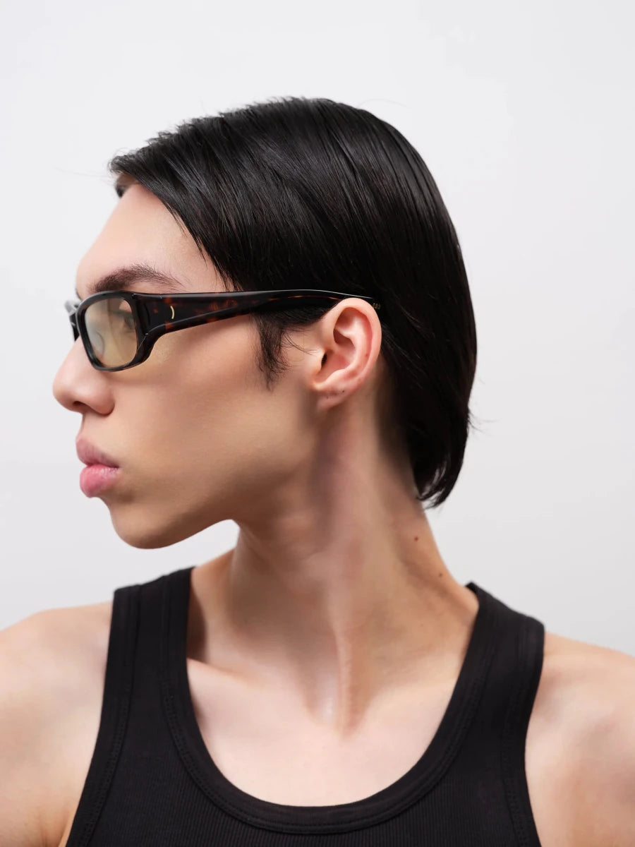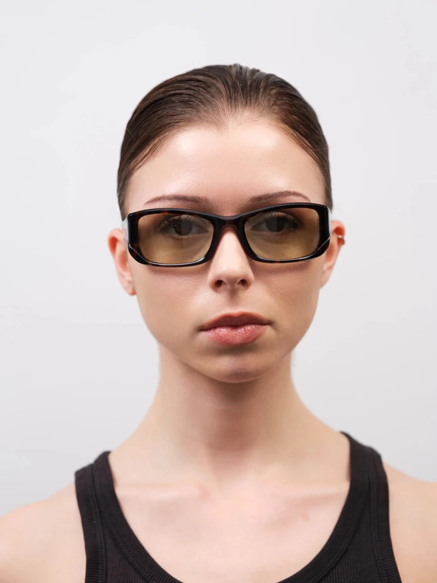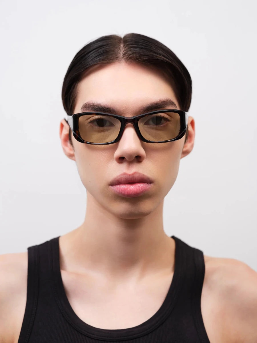 Modellen er inspireret af 90’ernes skarpe former, men opdateret med nutidens komfort og premium materialer. En stærk statement-solbrille, der samtidig er alsidig nok til daglig brug.