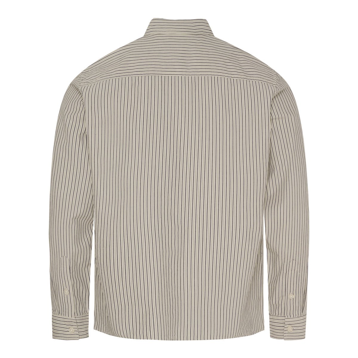 Skjorten har klassisk krave, knaplukning foran og lange ærmer med manchetter, hvilket skaber et poleret finish. Den neutrale farve og det stribede mønster gør skjorten let at kombinere med bukser, jeans eller lag-på-lag styling, hvilket gør den til et alsidigt wardrobe-must-have.