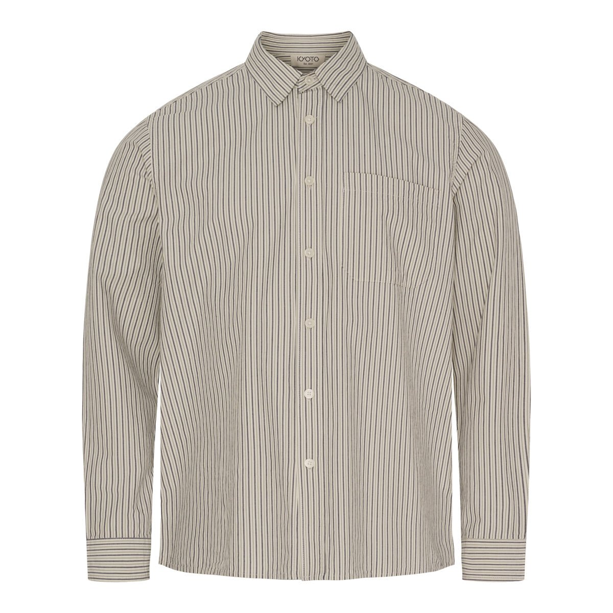 KY90 Light Sand Shirt Stripe fra Kyoto er en tidløs skjorte fremstillet i 100% blød bomuld, som sikrer både komfort og åndbarhed hele dagen. Den lyse sandfarve med striber giver skjorten et elegant, moderne look, der passer perfekt til både casual og formelle outfits.