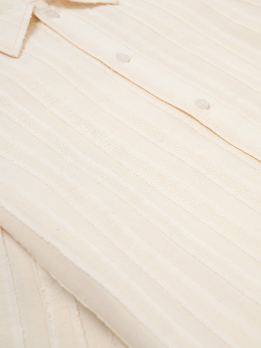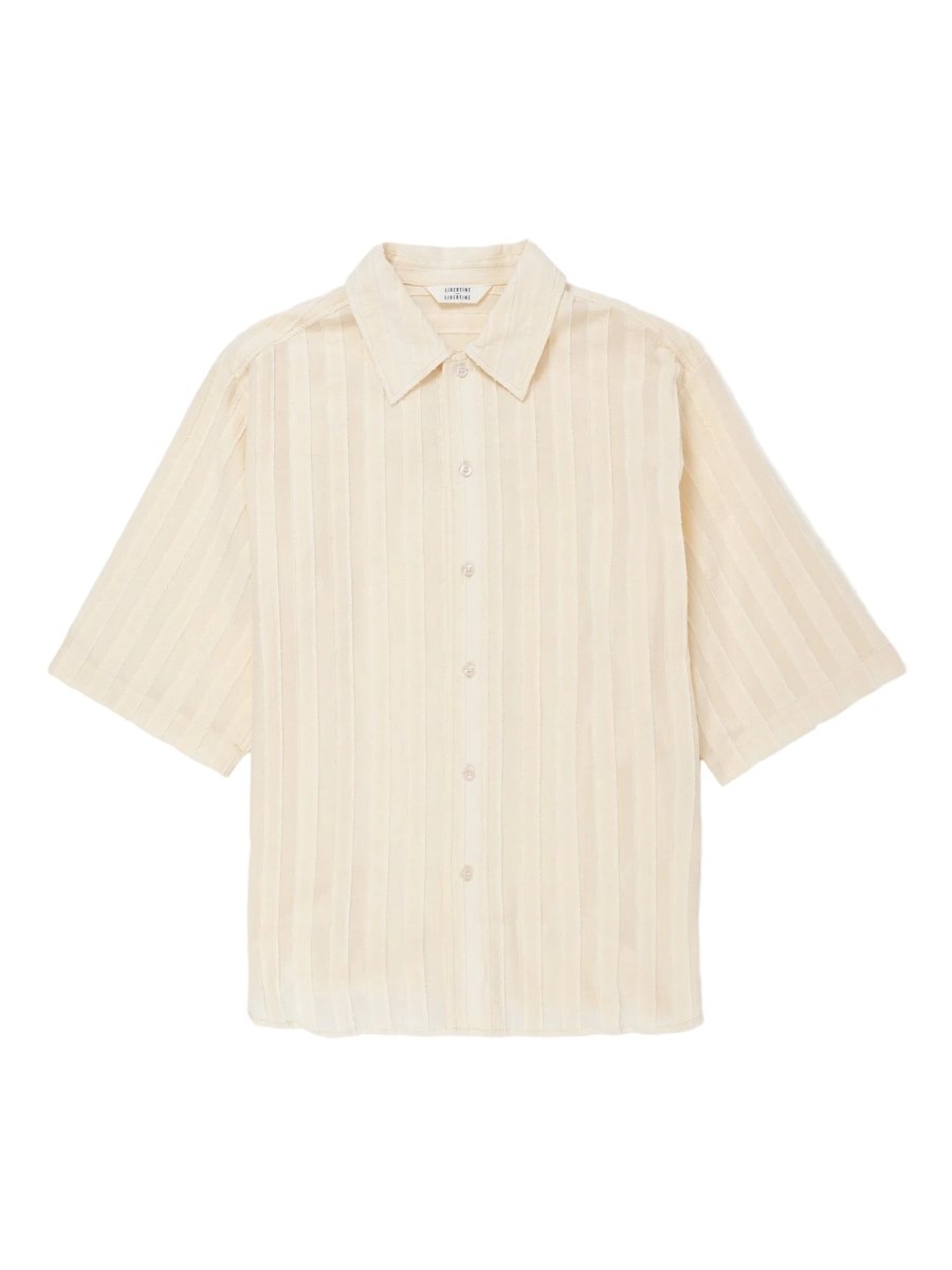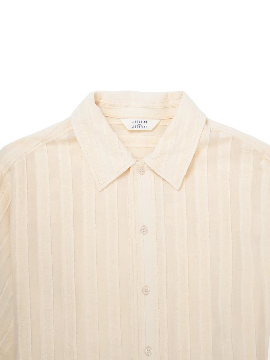Carbon-skjorten har en løs pasform, lukning i skind foran og korte ærmer.