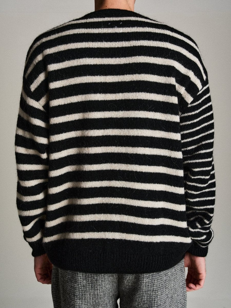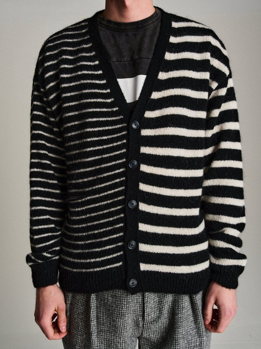 Pop Trading Company mohair striped knitted cardigan BLACK/WHITE