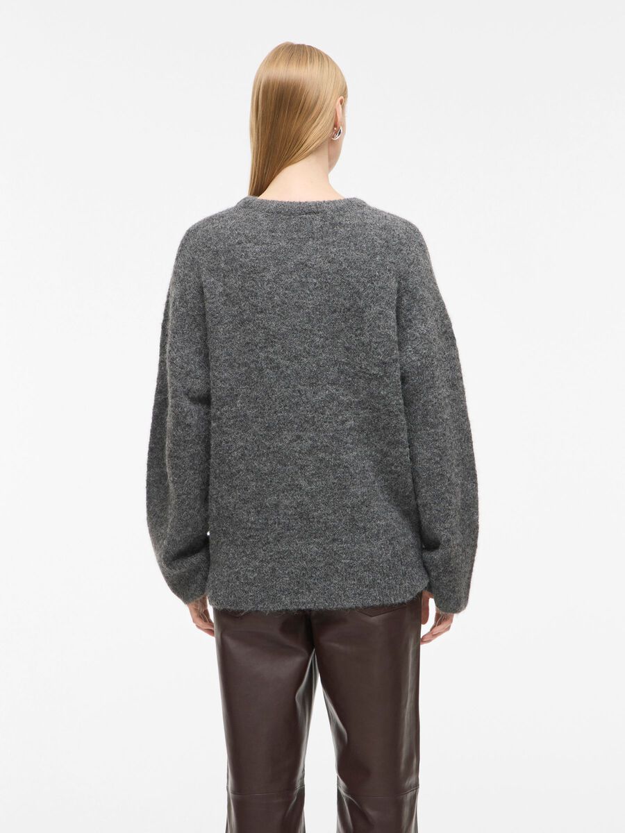 Den afslappede pasform og rund halsudskæring giver et moderne, effortless udtryk – perfekt til lag-på-lag styling i de kolde måneder. Den mørkegrå melering gør den alsidig og nem at matche med alt fra jeans til nederdele.
