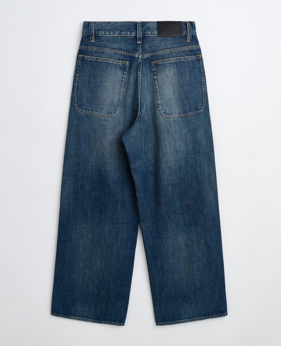 Sunflower Super Wide er et par jeans med en markant bred pasform og et tydeligt workwear-inspireret udtryk. De er fremstillet i kraftig 13,5 oz økologisk denim med crosshatch-vævning, som giver stoffet struktur og dybde.