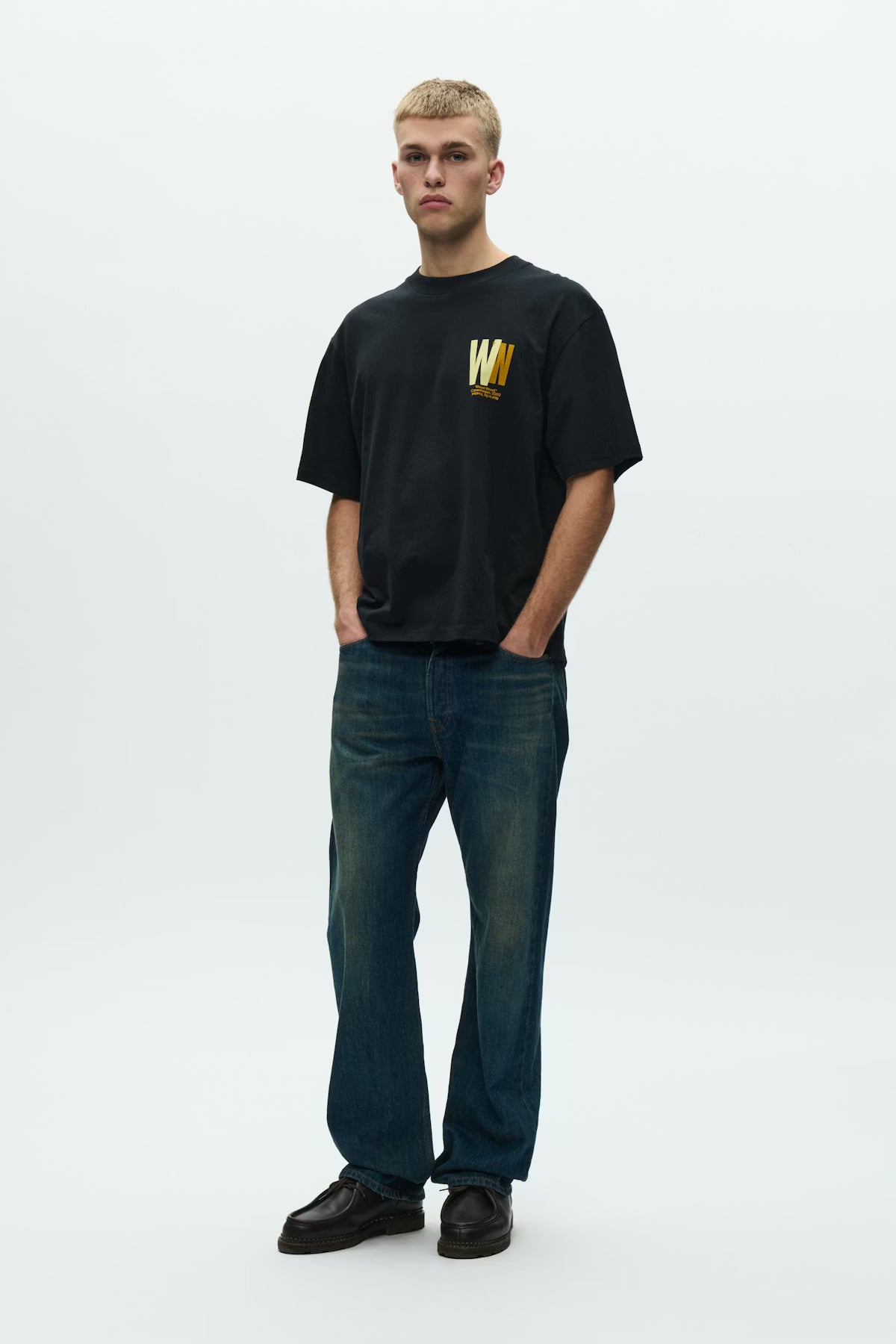 T-shirten er fremstillet i 100% bomuld med en blød, strikket kvalitet, der gør den komfortabel til hverdagsbrug. Farven Black understreger det grafiske design og gør den nem at style – både som standout piece og i mere nedtonede outfits.